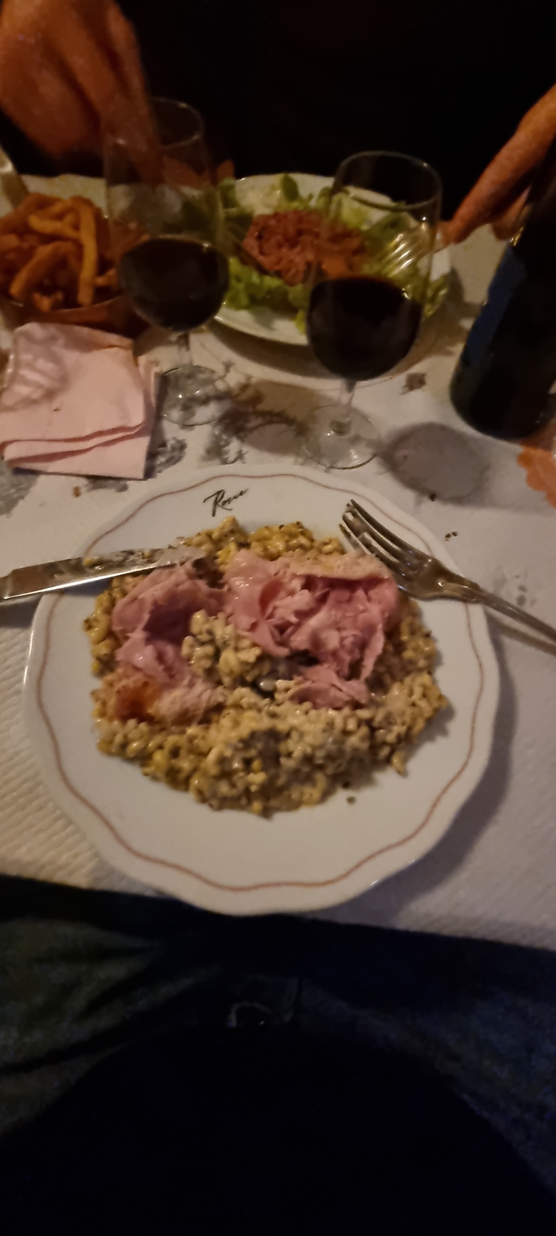 Très bel accueil, le cadre est atypique et ancien. Les plats sont très bons, le plat de coquillette à la truffe est délicieux. Je vous recommande d’aller au toilette à l’étage juste pour le décor ancien d’une salle de bain et des pièces pour y manger. Serveurs très sympathiques. Je suis ravie. Plats copieux.
