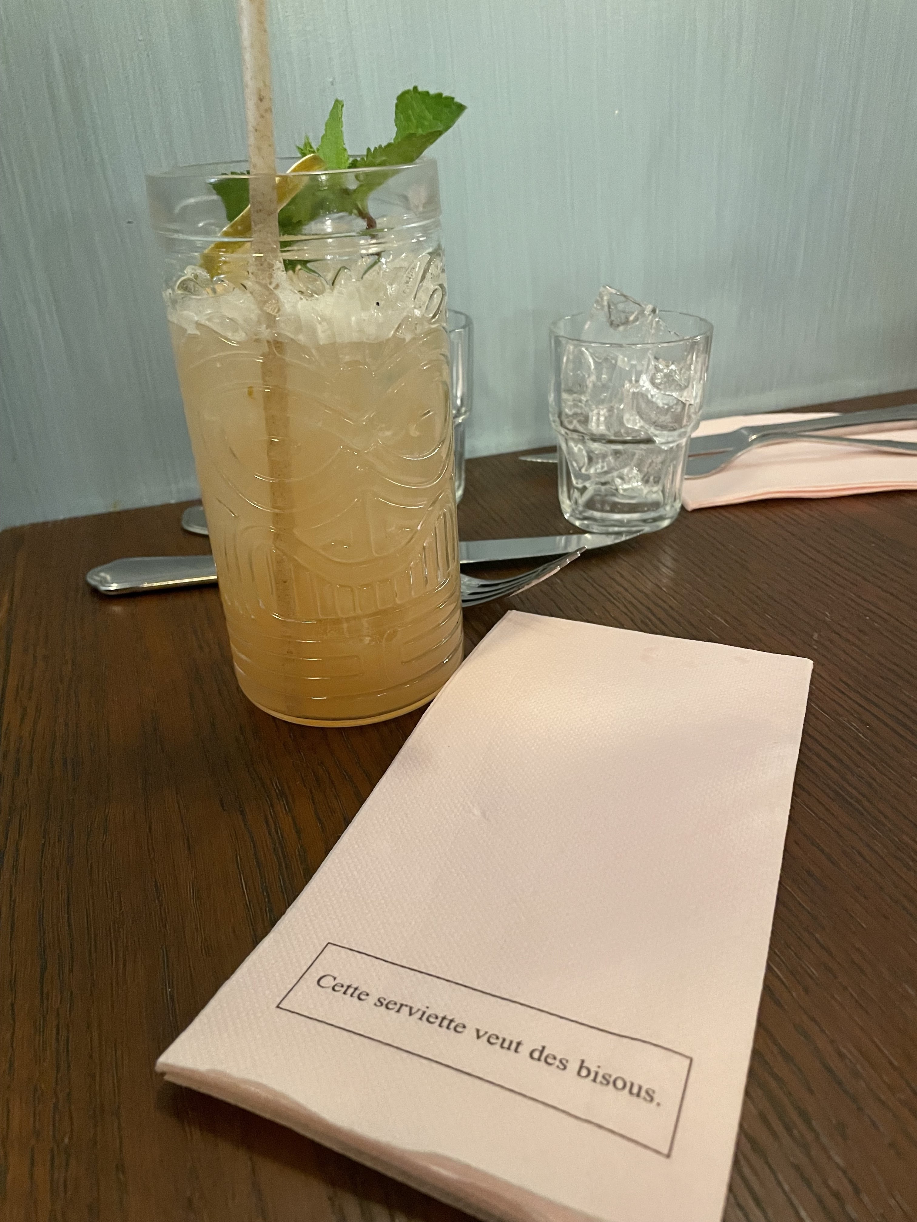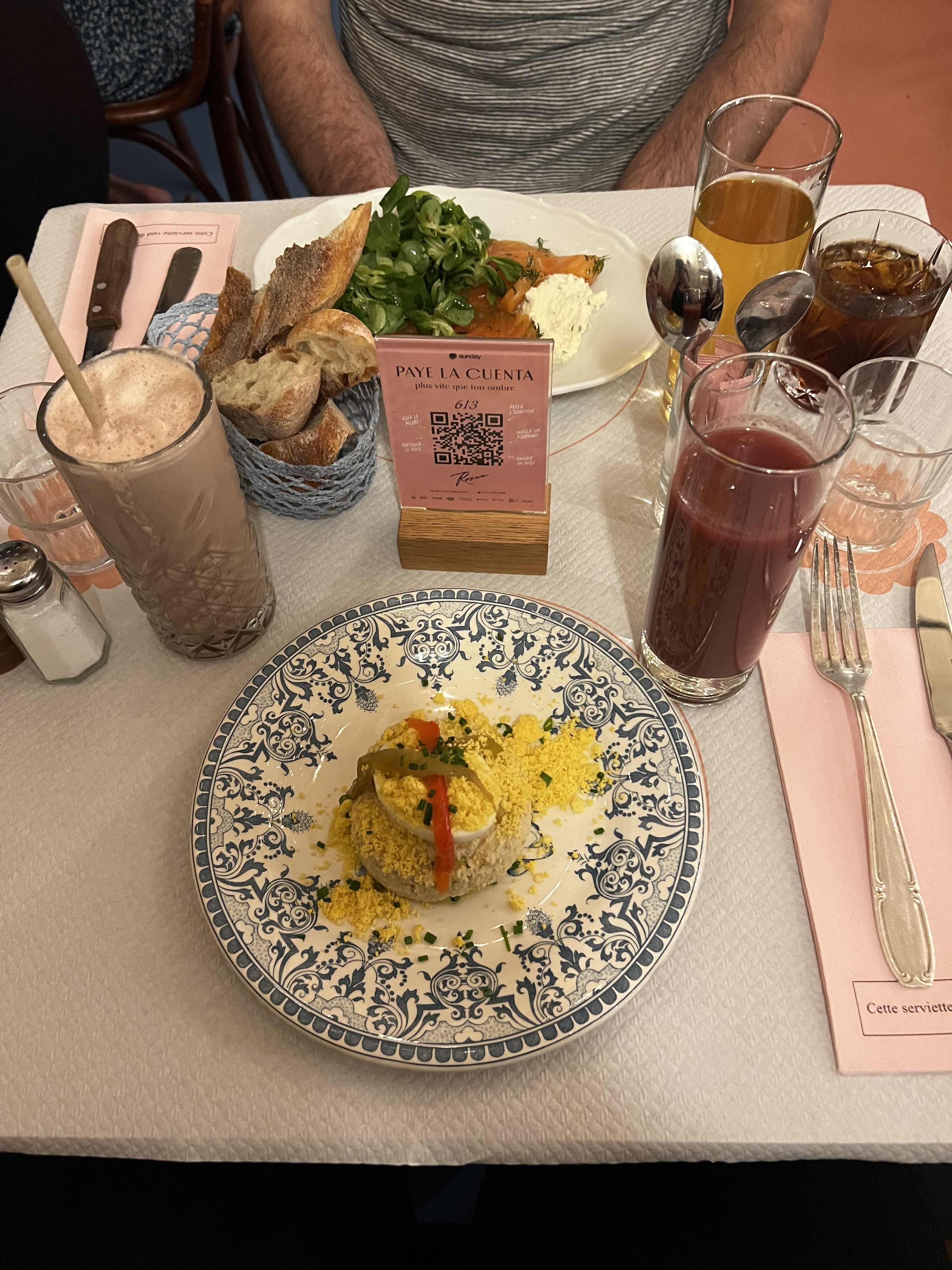 C'était l'un de mes endroits préférés où nous avons dîné à Paris ! L'énergie était si vibrante, un peu bruyante mais le personnel était formidable et attentionné, surtout notre serveur ! La nourriture et les boissons étaient vraiment fantastiques. Mes amis et moi avons tous essayé les commandes des uns et des autres et tout était *baiser du chef*