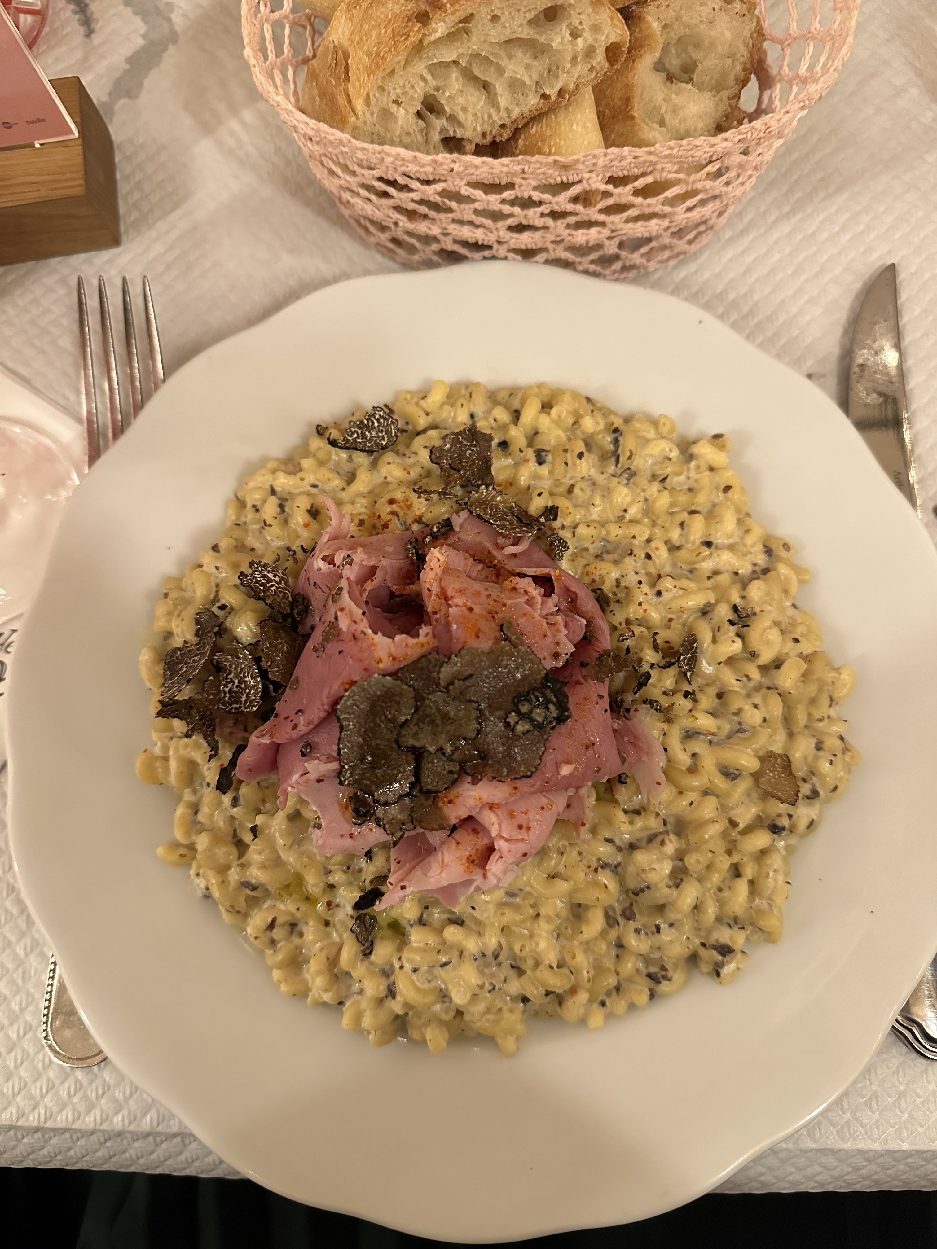 Une adresse que je voulais tester depuis longtemps et qui ne m'a pas déçue ! Les coquillettes à la truffe sont incroyables. La panna cotta praliné était divinr aussi !