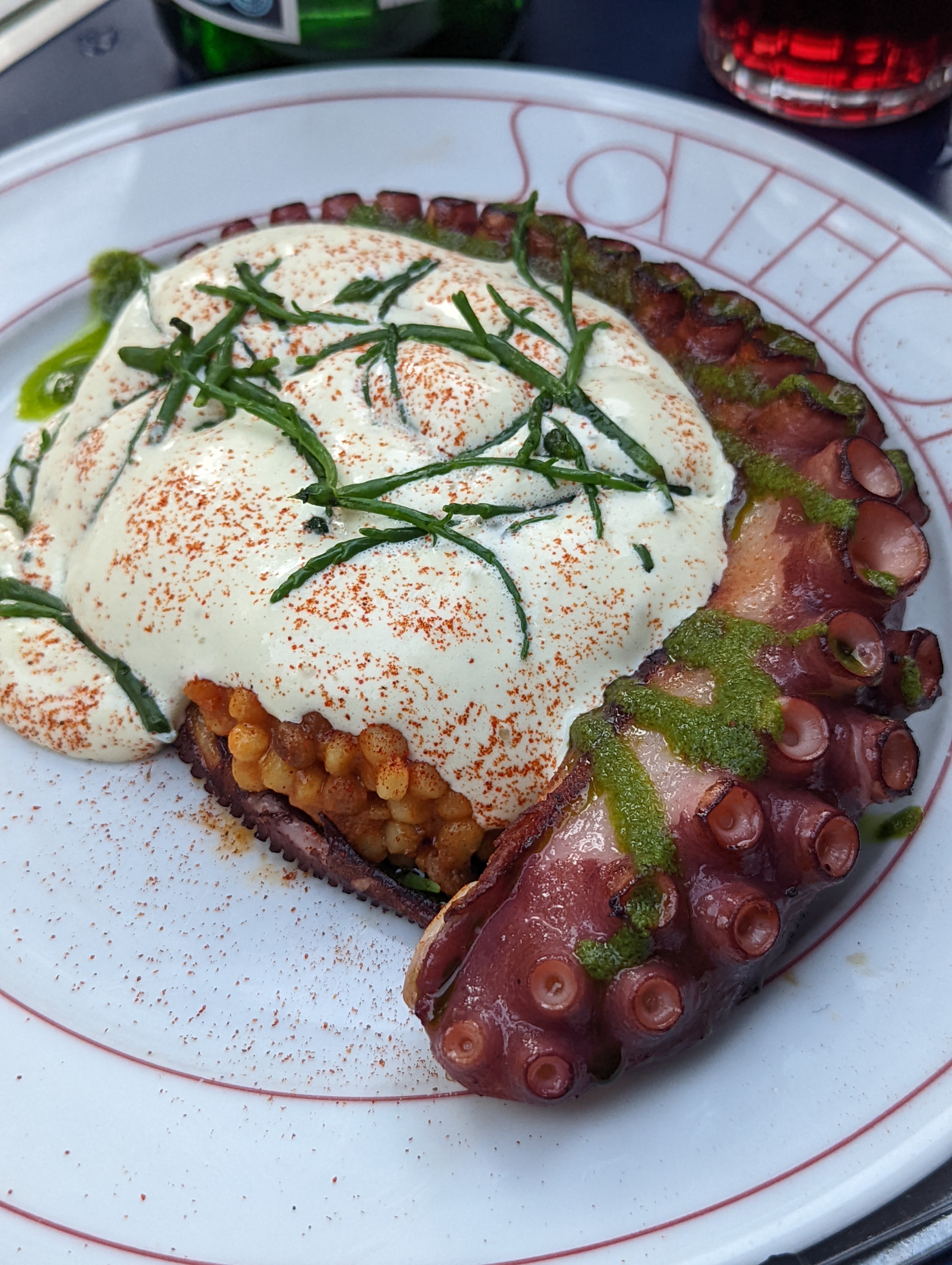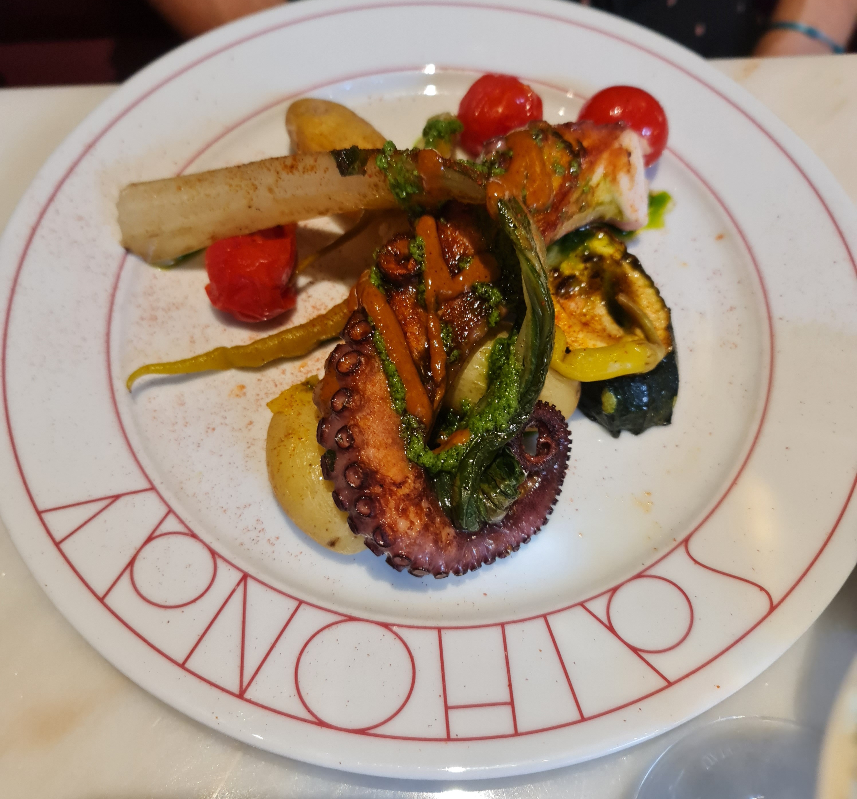 Carte trop banale.. assiette peu garnie...pauvre 2 bras de poulpe sur des blettes pas cuites et une feuille de choux rouge avec 5 petite pomme de terre... Vraiment pas pour son argent...ni aucun intérêt gustatif..