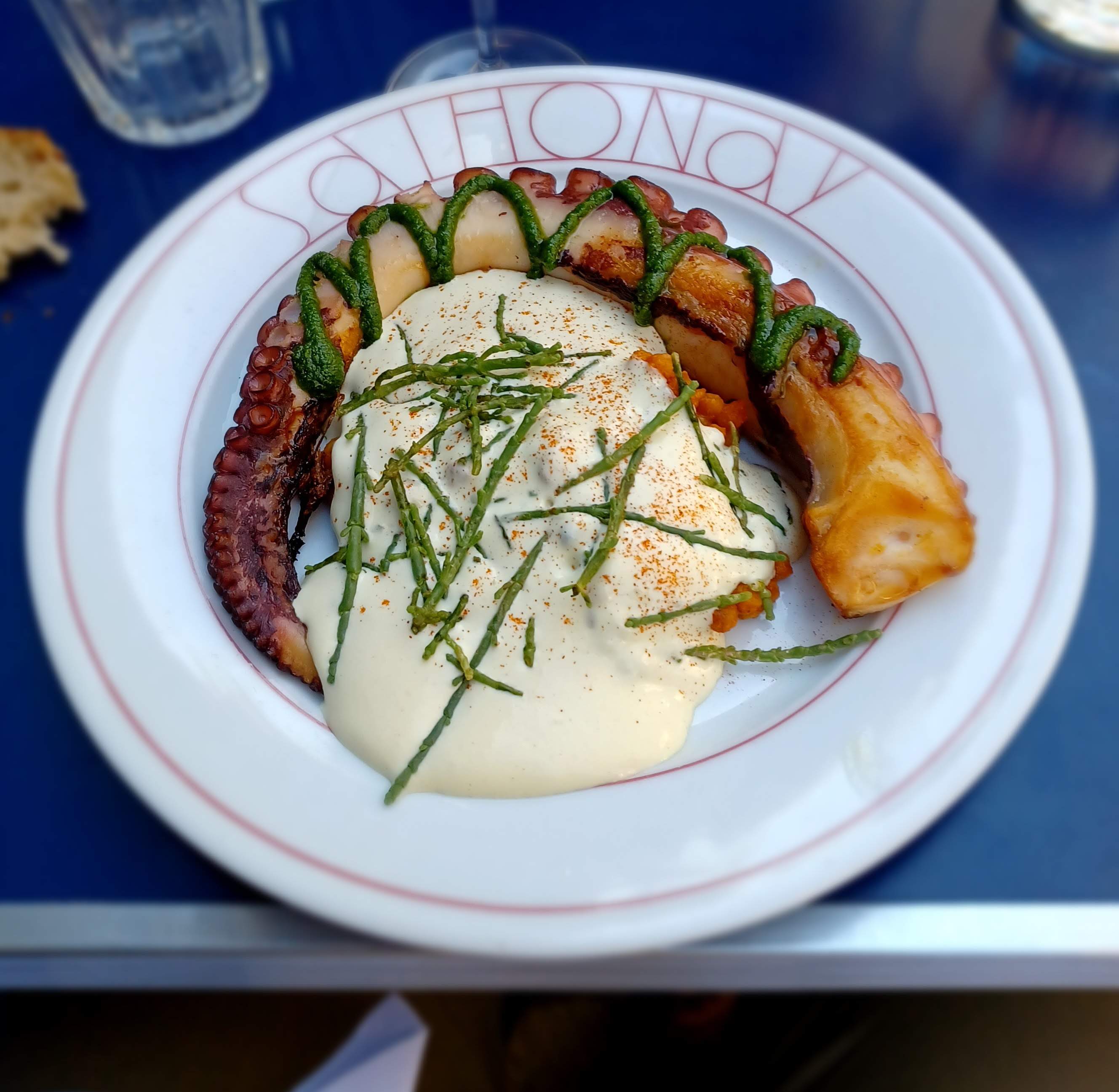 Au bord de la place sathonay cette petite brasserie à propose un poulpe au chou rouge divinement bon