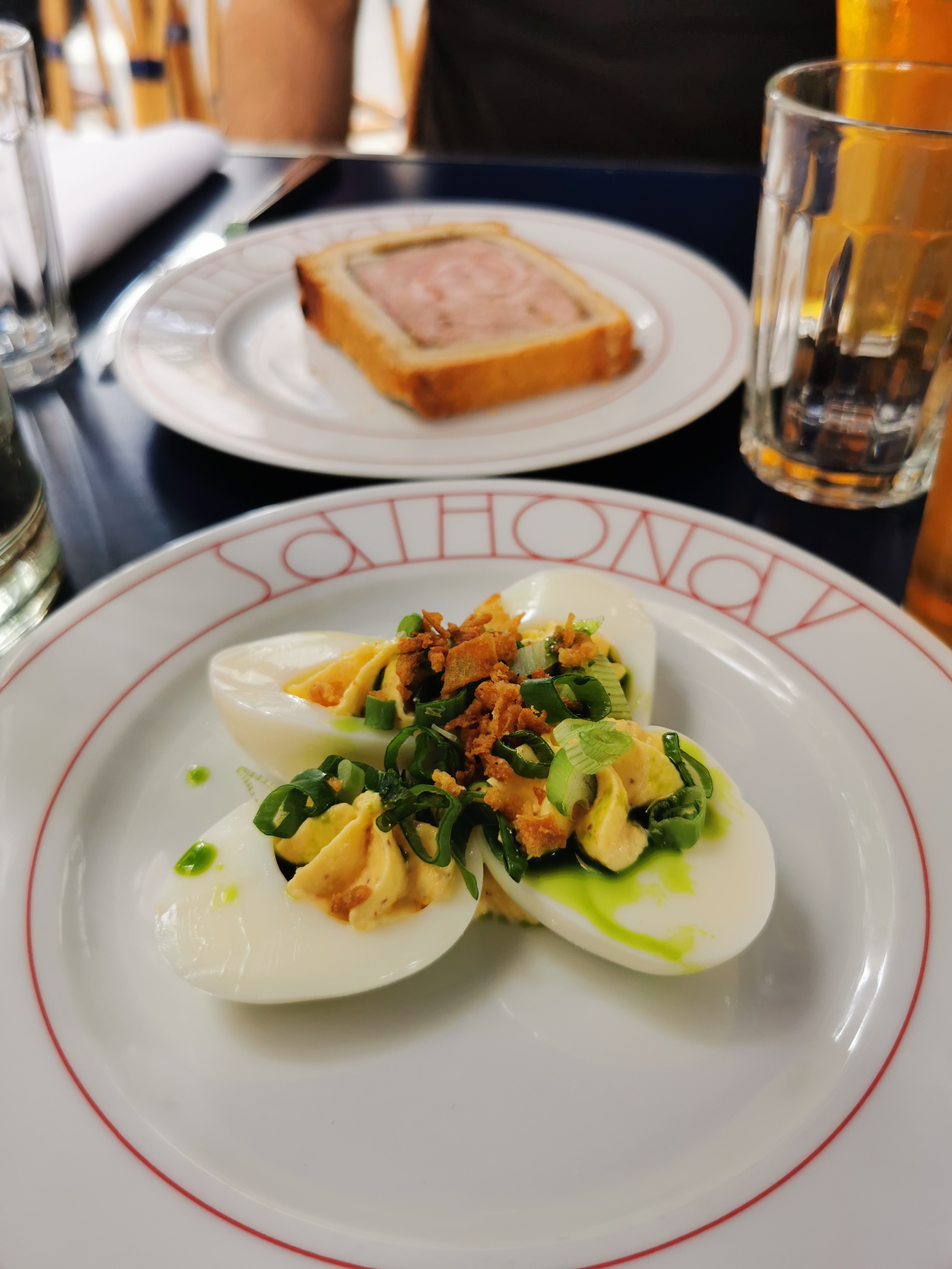 Café Sathonay, un lieu dont j’entendais parler depuis un certain temps. Nous avions passé un super moment entre famille et amis. Produits de grande qualité, très bien mis en valeur. Les portions sont très généreuses et ça fait vraiment la différence, je suis reparti en roulant. J’apprécie de trouver des véritables pasta alla carbonara dans ce genres de lieux. Le guanciale est très bon et bien confit. Seul point négatif, le Paris Satho pralines n’était pas incroyable, mais il s’agit simplement d’une question de goût.
