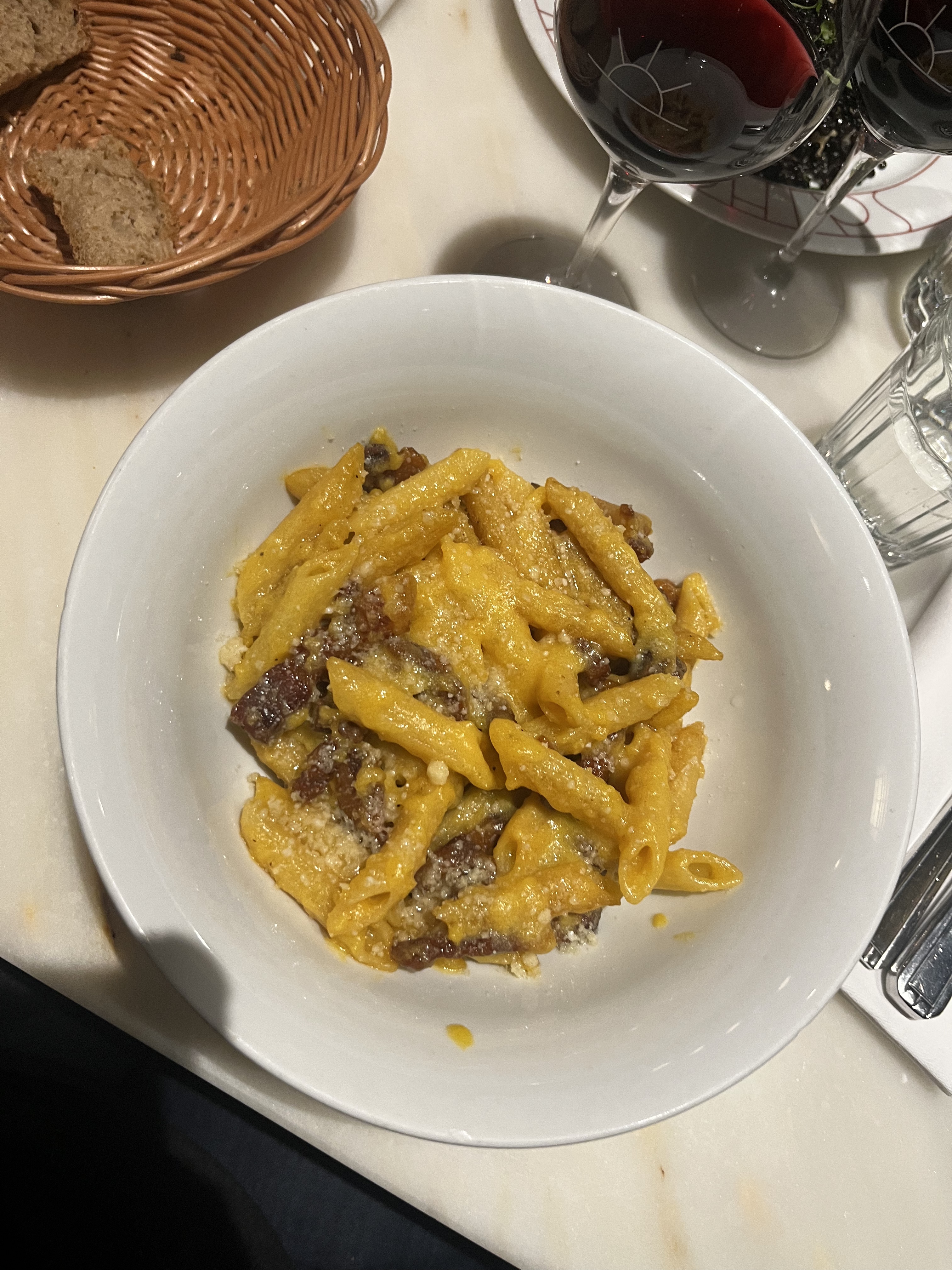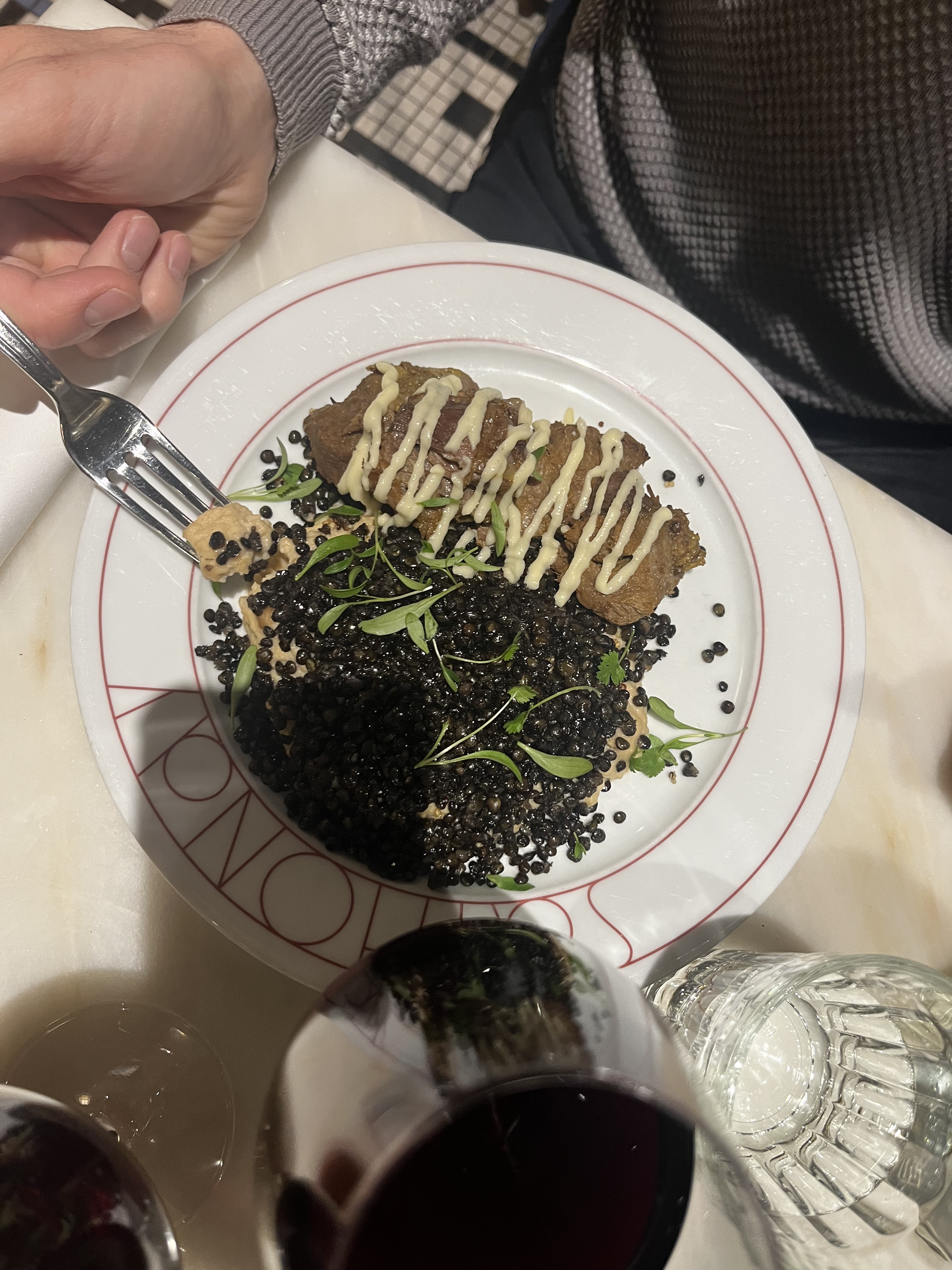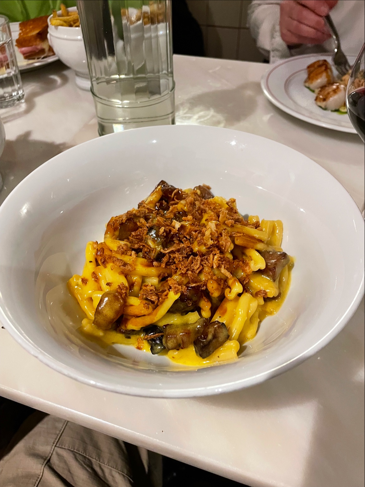 Accueil très sympathique dans ce restaurant situé place Sathonay. Il y a du choix. Nous avons pris les véritables pâtes carbonaras (avec le guanciale bien sûr) et l’effiloché de porc. C’était très bon, dommage pour les pâtes qui manquaient de la crémosité du jaune d’œuf, bouillon et pecorino… En dessert la cervelle et le cheesecake, c’était bon aussi !