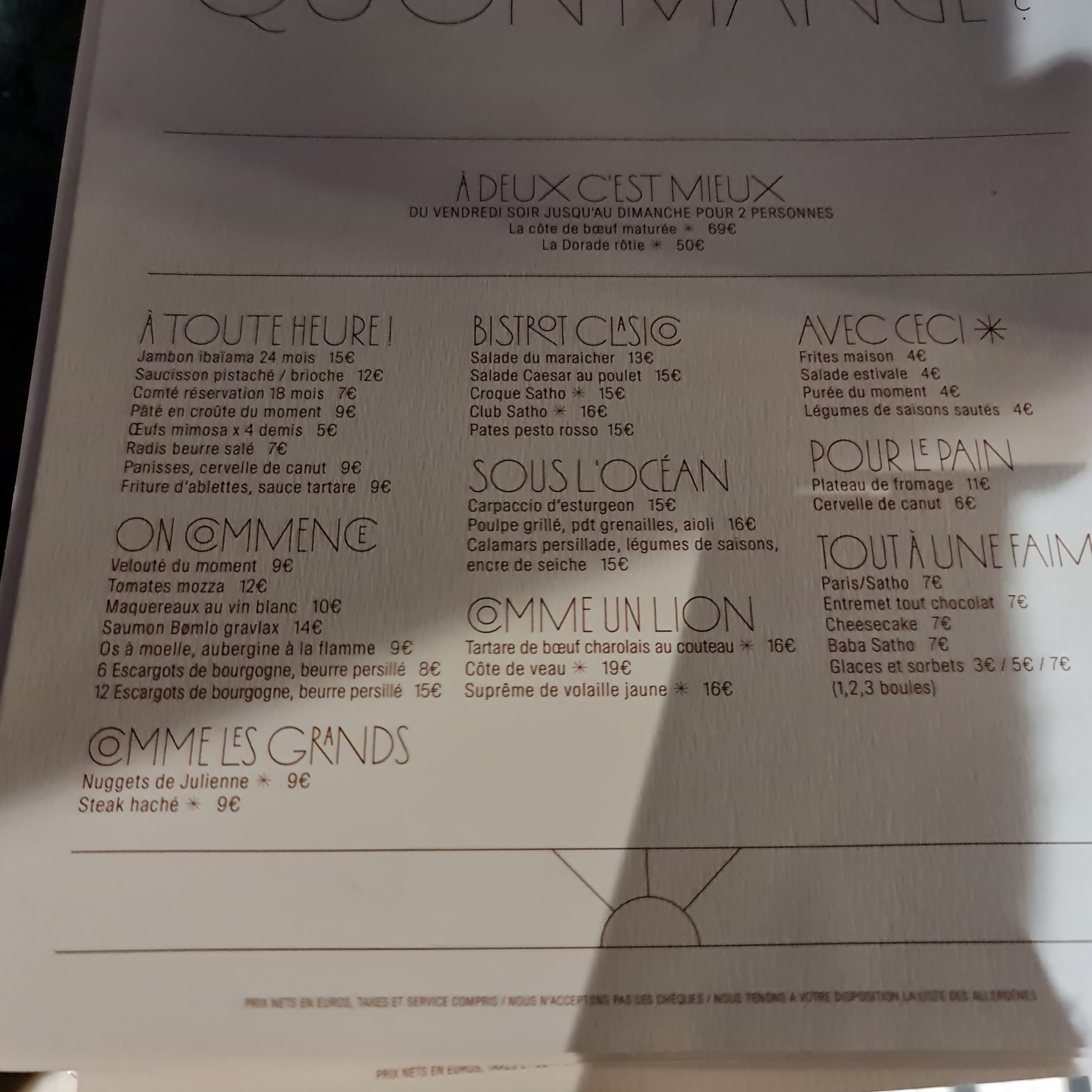 Serveurs sympathiques. Pour nos menus, nous prenons des calamars très bien préparés et des poulpes, un peu caoutchouteux, accompagnés d'un aïoli qui n'en avait que le nom, c'était plutôt une sauce moutarde trop liquide. En dessert, les paris-sato étaient à peine corrects, car ils devaient être prêts depuis plusieurs heures, tant les choux étaient ramollis ! Pour finir, au moment de payer, nous voulons régler une partie de l'addition en tickets restaurant, on nous annonce que le restaurant ne les prend pas le soir. On signale que, depuis la crise sanitaire, c'est possible et même le week-end. La serveuse nous répond on ne savait pas, mais de toutes façons on ne les prend pas . Le Sathonay applique sa propre loi .... OK.....mais nous n'y reviendrons pas, ce ne sont pas les brasseries et restaurants qui manquent sur Lyon !