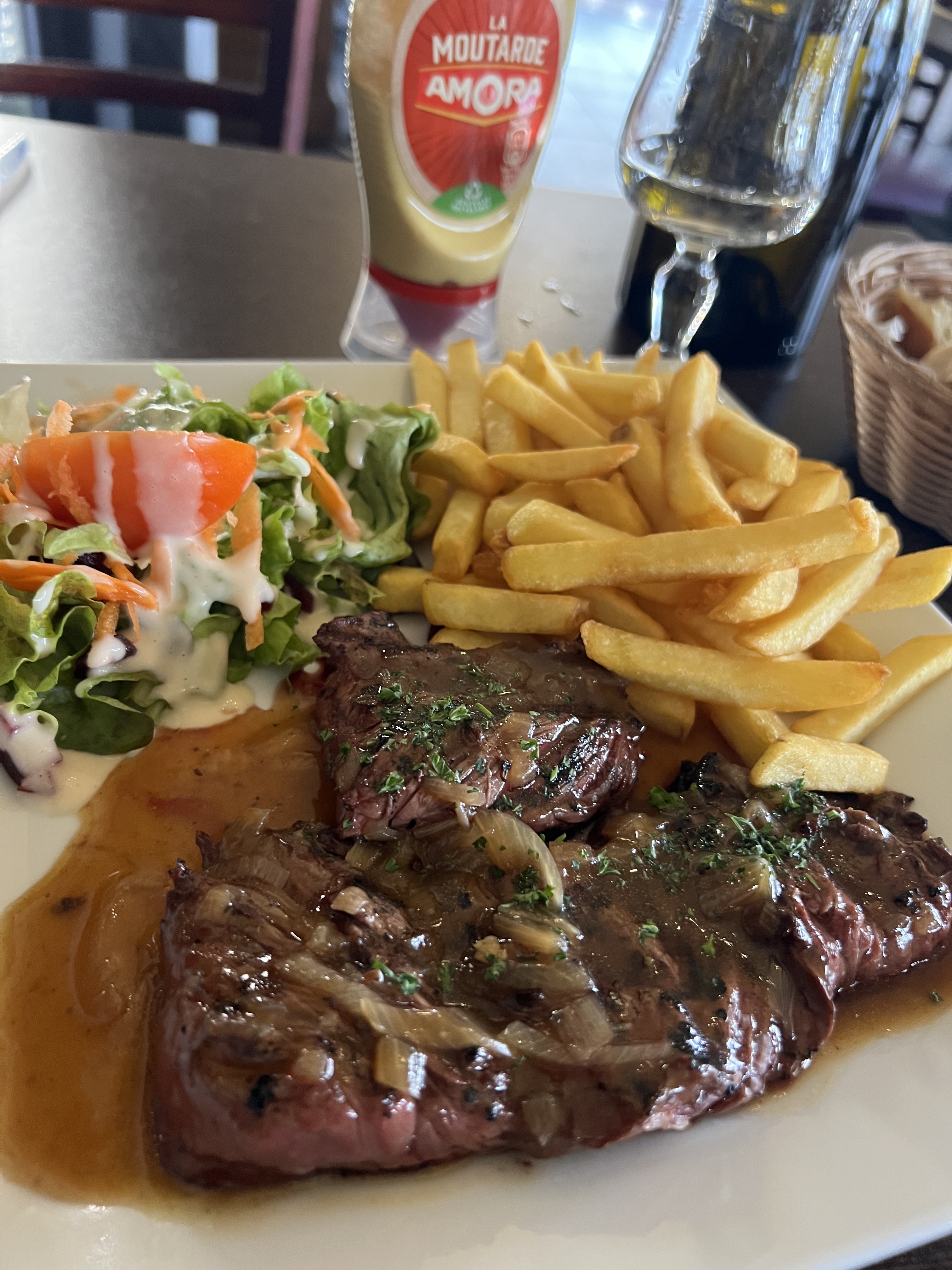 Très bonne entrecôte. Bon rapport qualité prix pour un déjeuner. Un peu bruyant, dommage.