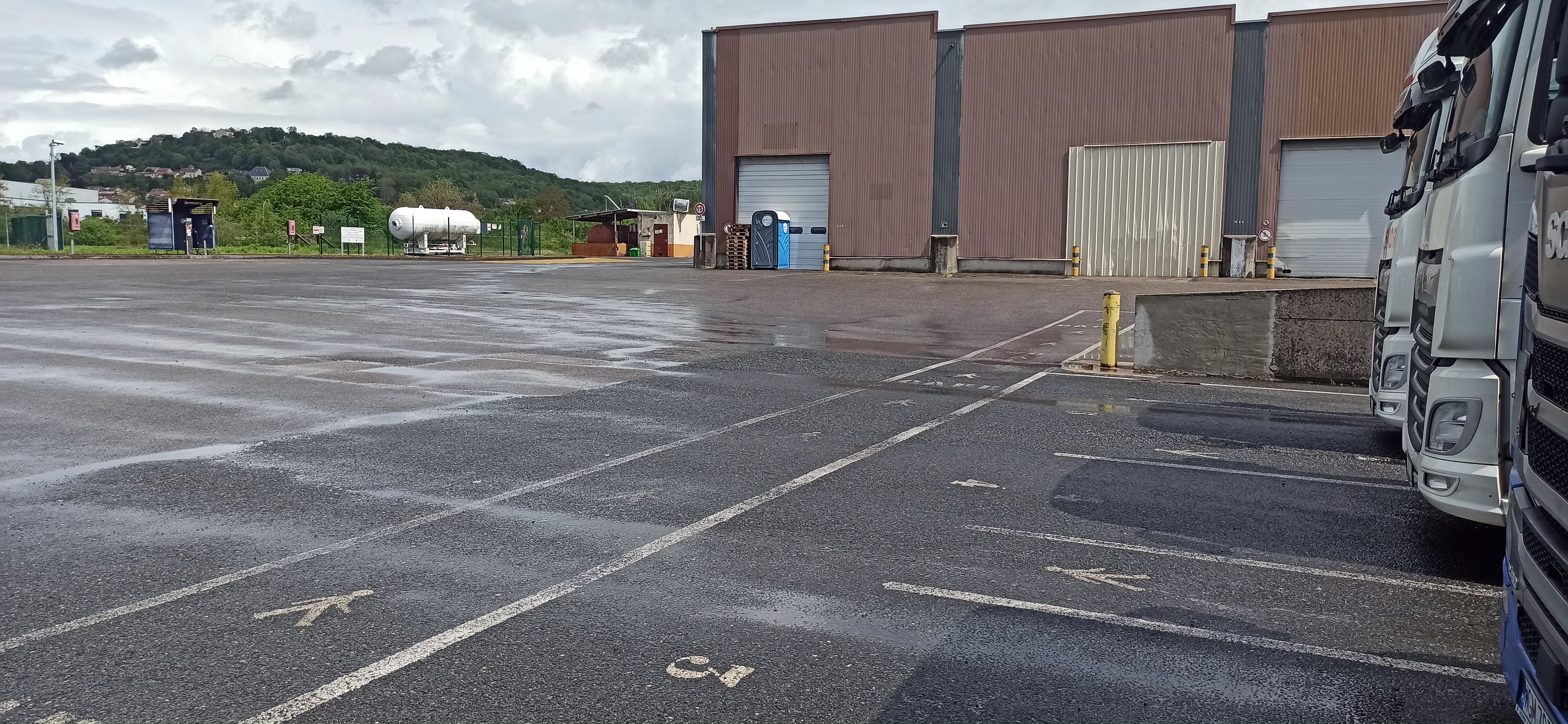 Déchargement de la bouteille pratiquement immédiatement, chargement des palettes vides aussi, employés sympas, grand parking, on peut faire une pause... l'entreprise travaille jusqu'à 18h !!!!!