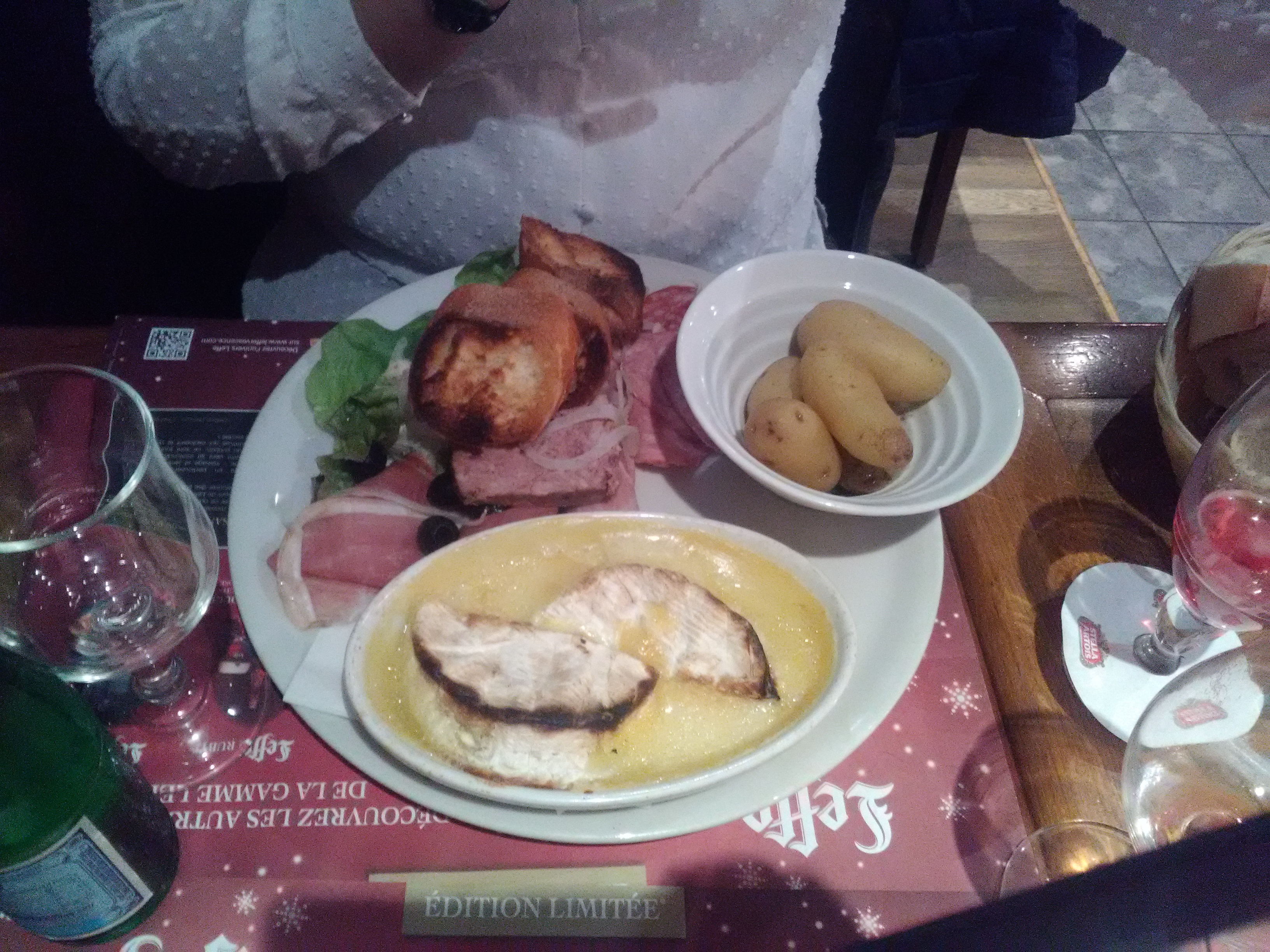 Nous venus avec un groupe de 60 personnes un vendredi soir pendant le marché de Noël.Service bien organisé entre le 1er plat servie et le dernier, pas d attente.Le personnel a été très agreable.Nous avons bien mangé.