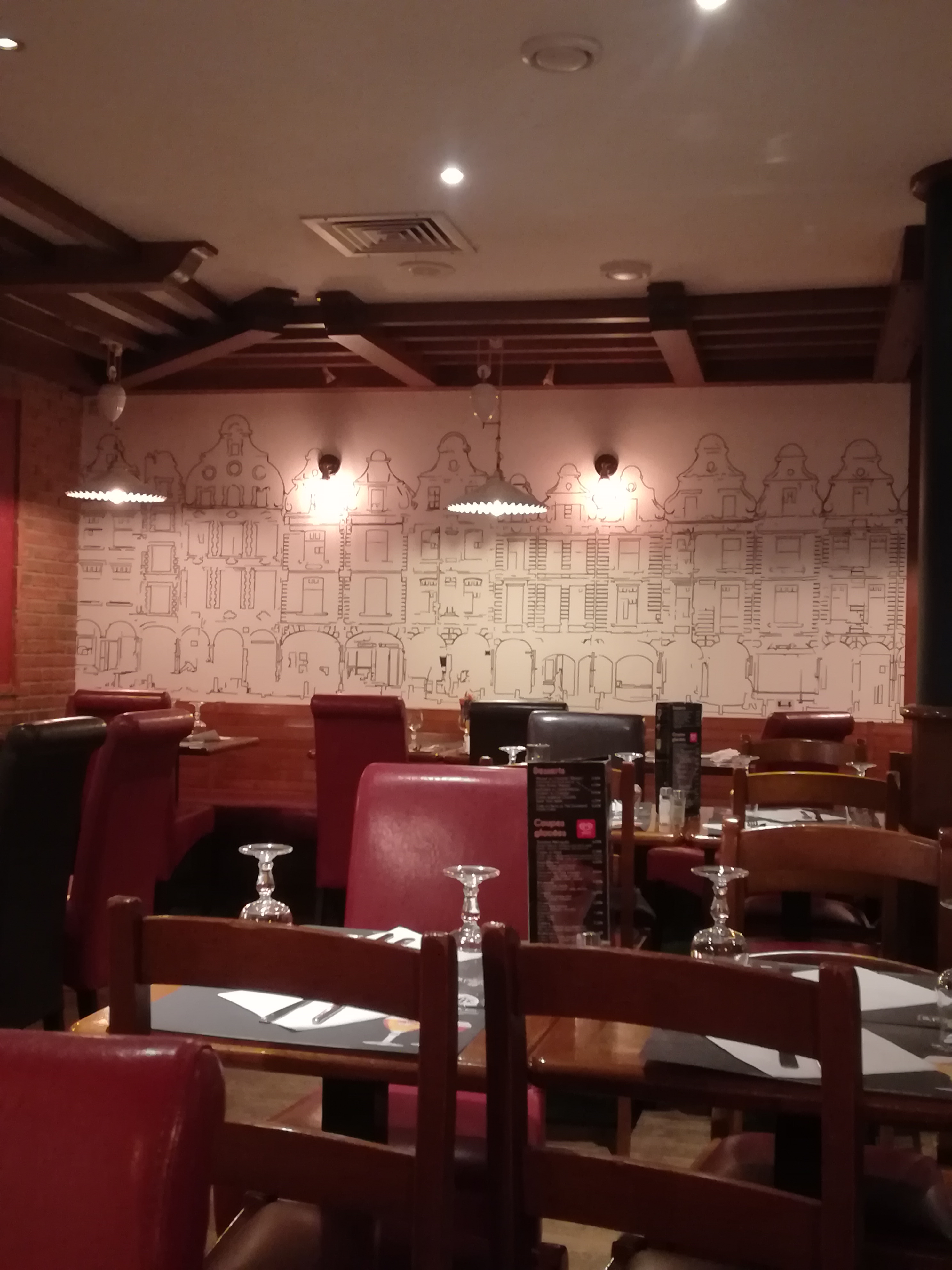C’est long (près de 40mn d’attente), c’est bruyant, qualité mauvaise des plats presque froids. La carbonade qui n’en était pas une avait un goût de brulé peu recommandable. Beaucoup de personnel mais il semble débordé (il ne faut pas le déranger) et les toilettes sont particulièrement salles. Des points positifs ? Je n’en vois aucun !! Même au moment de payer il y a eu des erreurs.