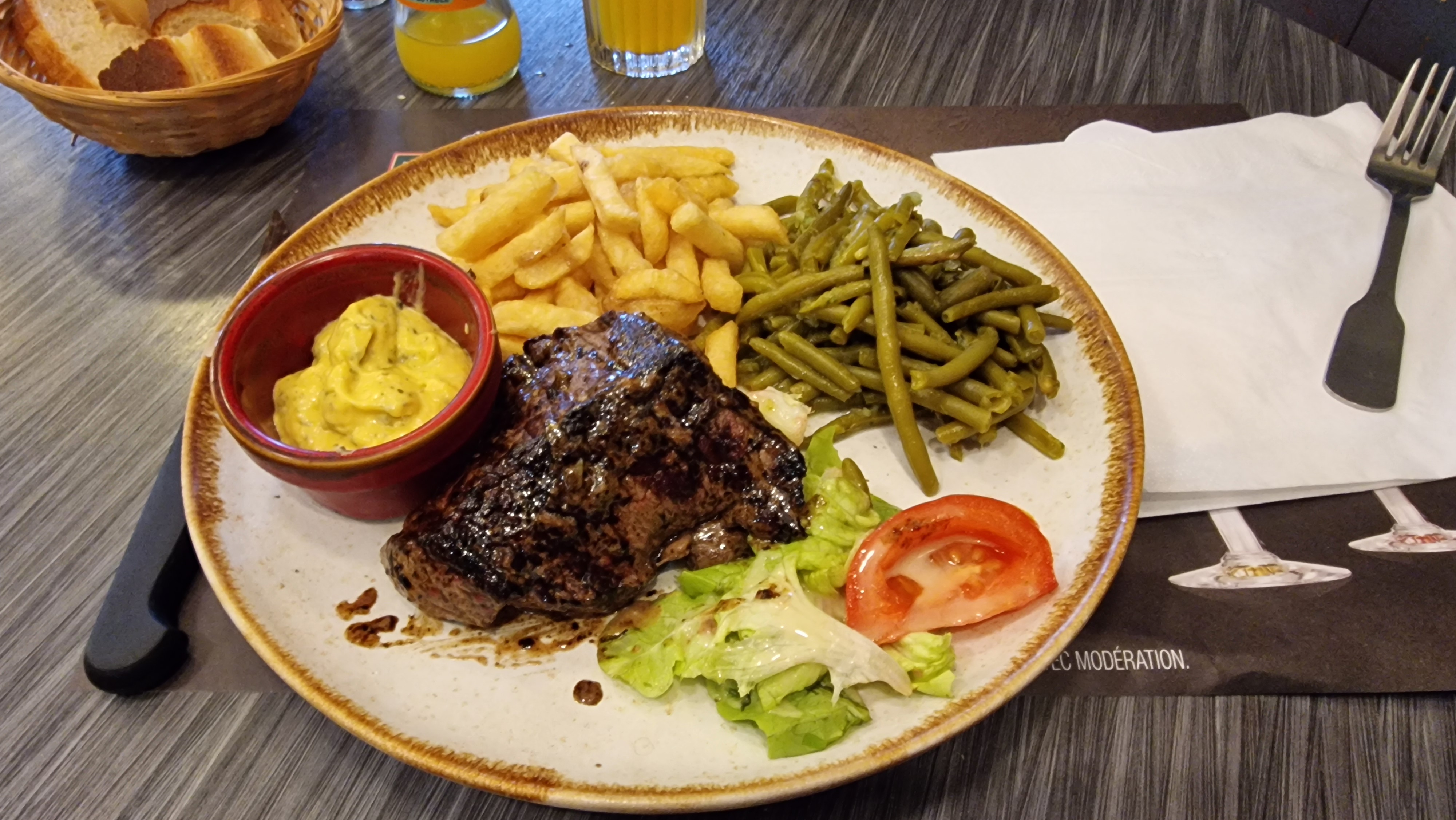 Excellente entrecôte saignante, cuisson parfaite, service très dilligeant et très sympa, prix imbattables, visite à répéter.