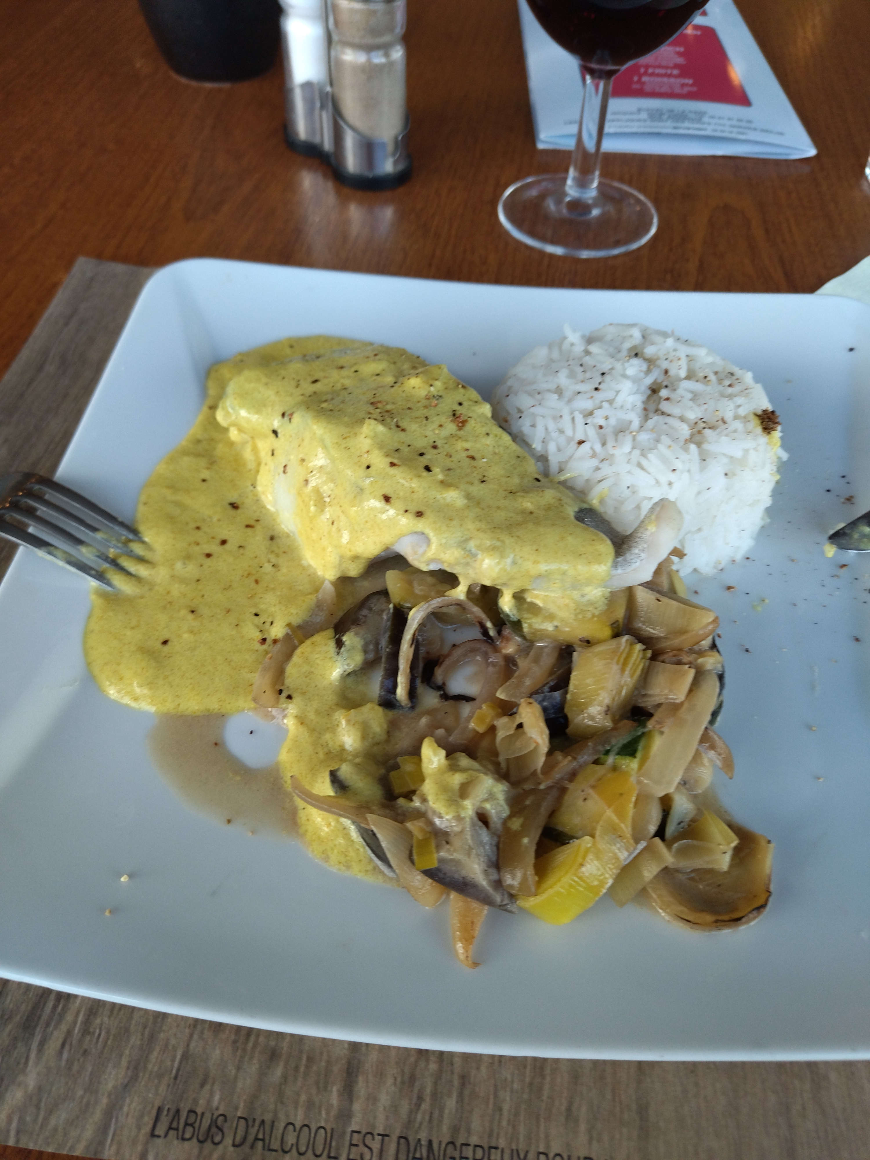 Repas en terrasse au soleil. L employée nettoie la terrasse juste derrière notre table les tables déplacées en les glissant pas très sereine l ambiance. Les frites surgelées pas assez cuites. Plutôt moyen quand même...