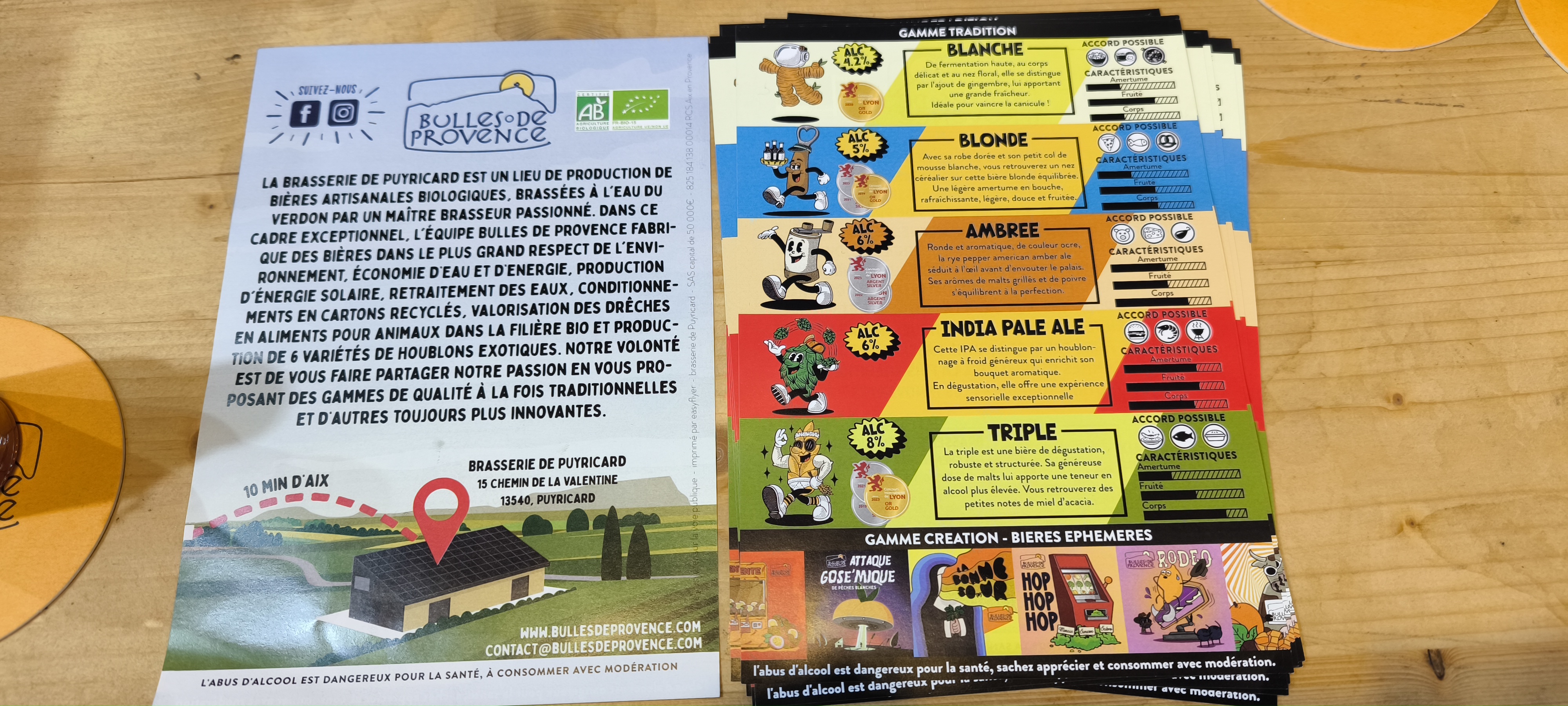 C'est vraiment l'occasion d'acheter des produits locaux et quels délicieux produits. Toutes sortes de bières brassées à Puyricard chemin de Lignane. A participé à l'animation de la course pédestre : la Nocturne de Puyricard Avec modération mais avec beaucoup de plaisir