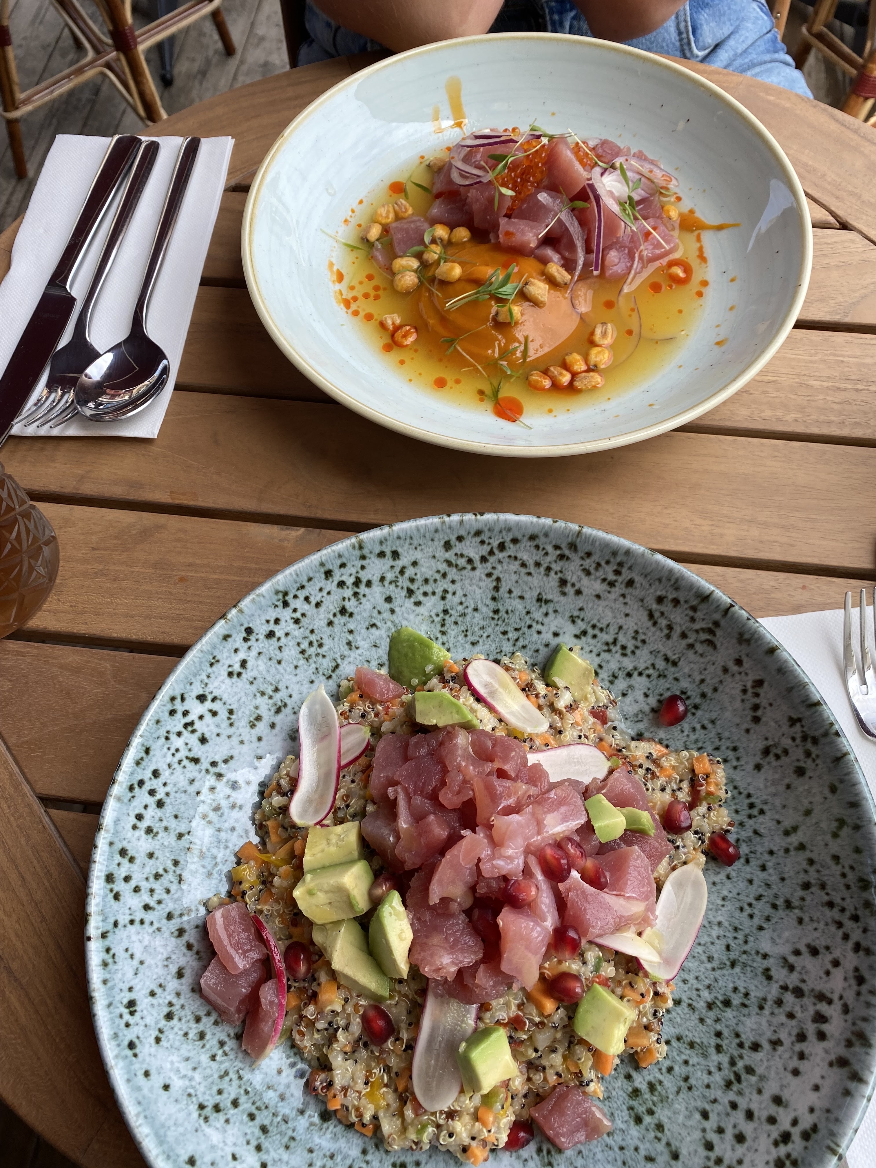 Des plats frais, délicieux et copieux ! Je suis fan de l'assiette centrale, du tartar revisité et du bol de quinoa 🤤 je recommande ce resto a 1000%