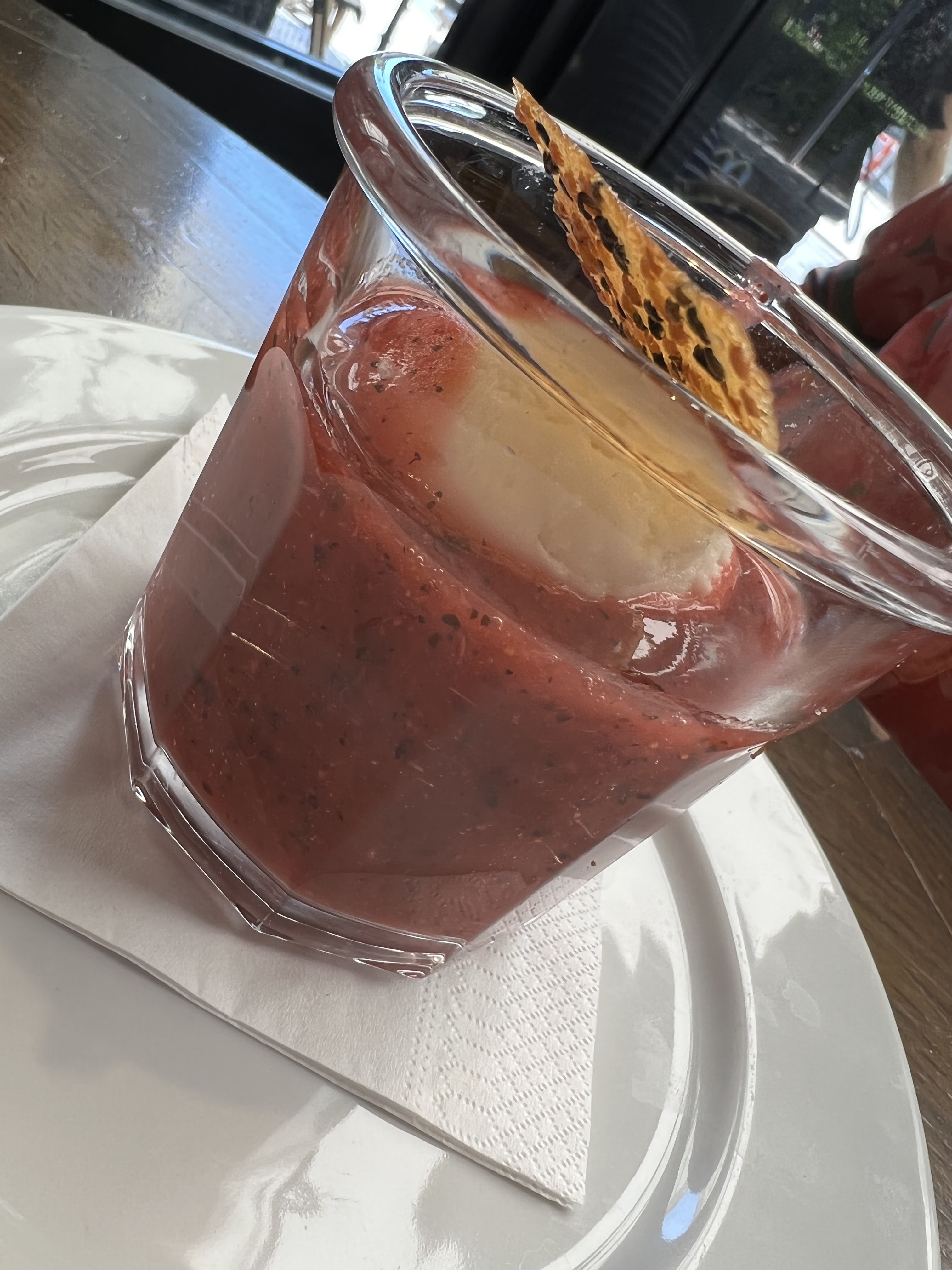 Petit cocktail entre amis, le sans alcool était très bon et super frais. Malheureusement, y’avait une guêpe dans mon verre et j’ai failli l’avaler (beurk). Le serveur me prend mon verre et revient avec le même (mais sans la guêpe) choquer, je lui demande si je peux en avoir un autre car je ne boirais pas la fin de ce verre, ayant eu une guêpe dedans … les boissons aux insectes m’intéresse pas, personnellement. Le serveur a la gentillesse de me dire : « Oui je peux vous le refaire, mais il vous sera aussi facturé » 😂 Bien merci, je vais garder celui la sans le finir alors …. Le service est a revoir …
