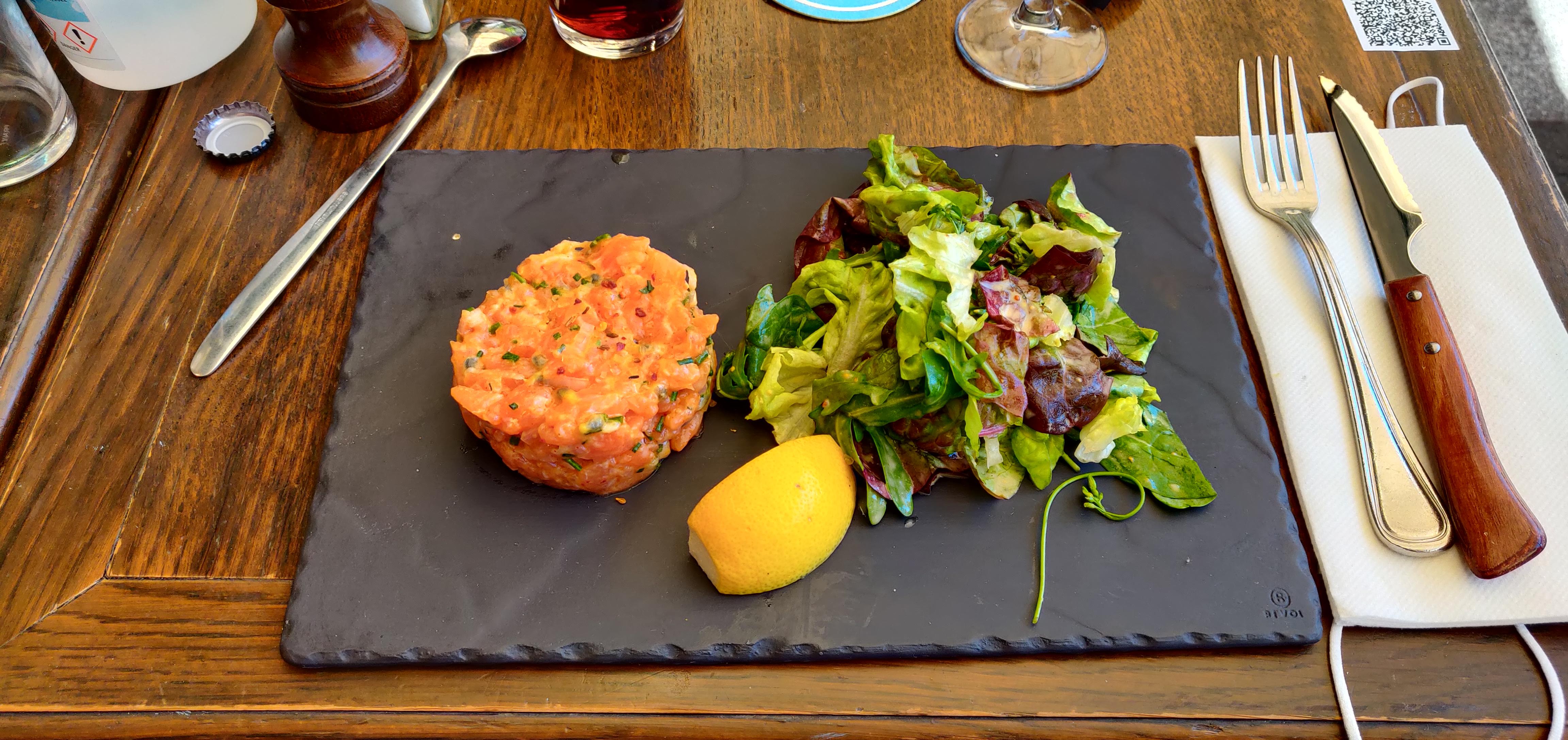 Très bon tartare, le vin au verre est trop cher, mais service exceptionnel. Bravo à mon serveur pour son énergie et son sourire permanent !