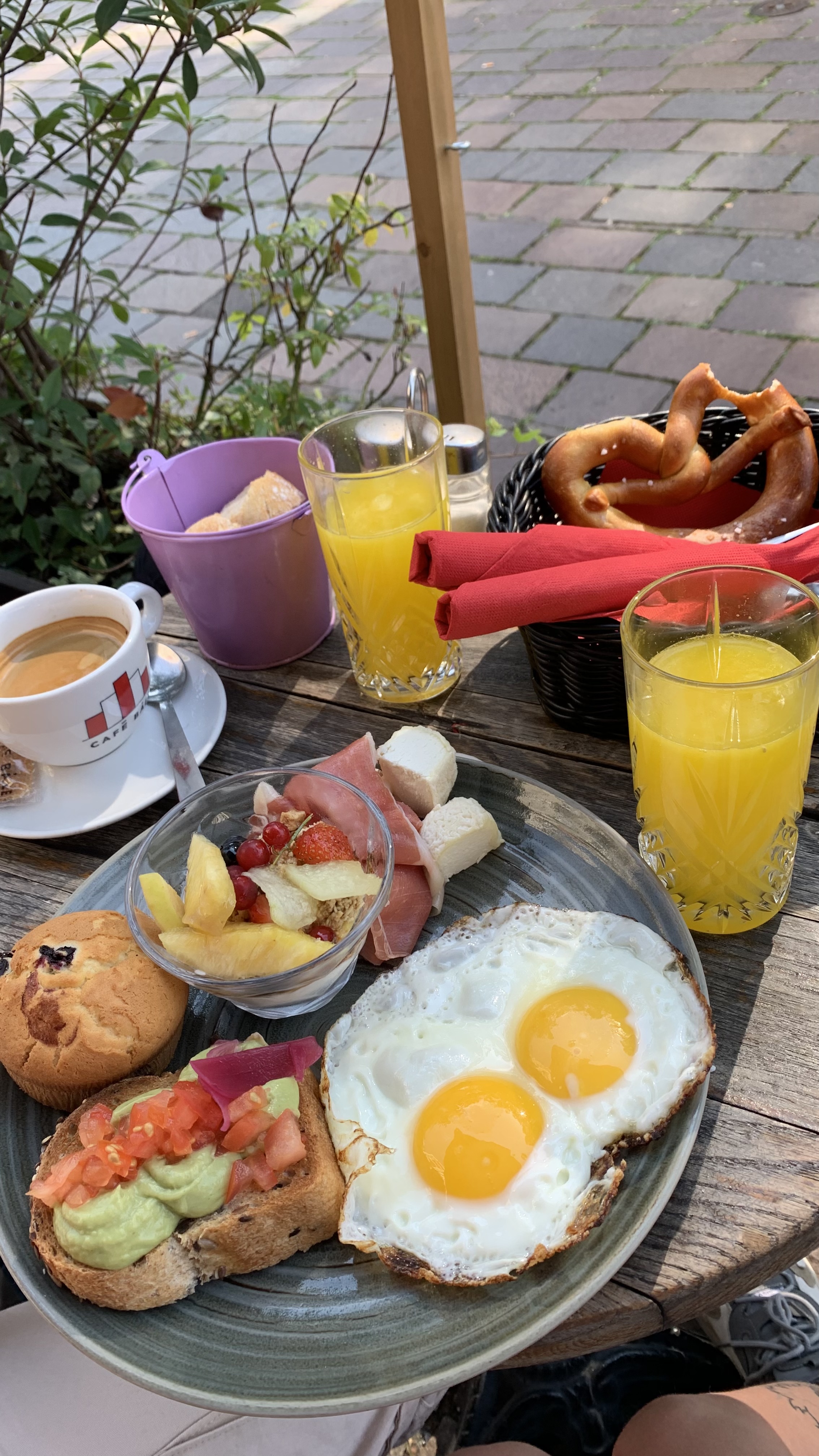 En arrivant nous ne savions mas que le petit déjeuner ne se faisait que jusqu'à 11 h, nous sommes arrivés à 11h05, nous avions donc prévu de faire un brunch. Déçu nous nous somme rabattus sure l'option brunch cependant je suis végétarienne donc ça n'avait pas beaucoup d'intérêt et je n'est pas trouvé ça très bon. La terrasse est cependant très belle et ensoleillée.