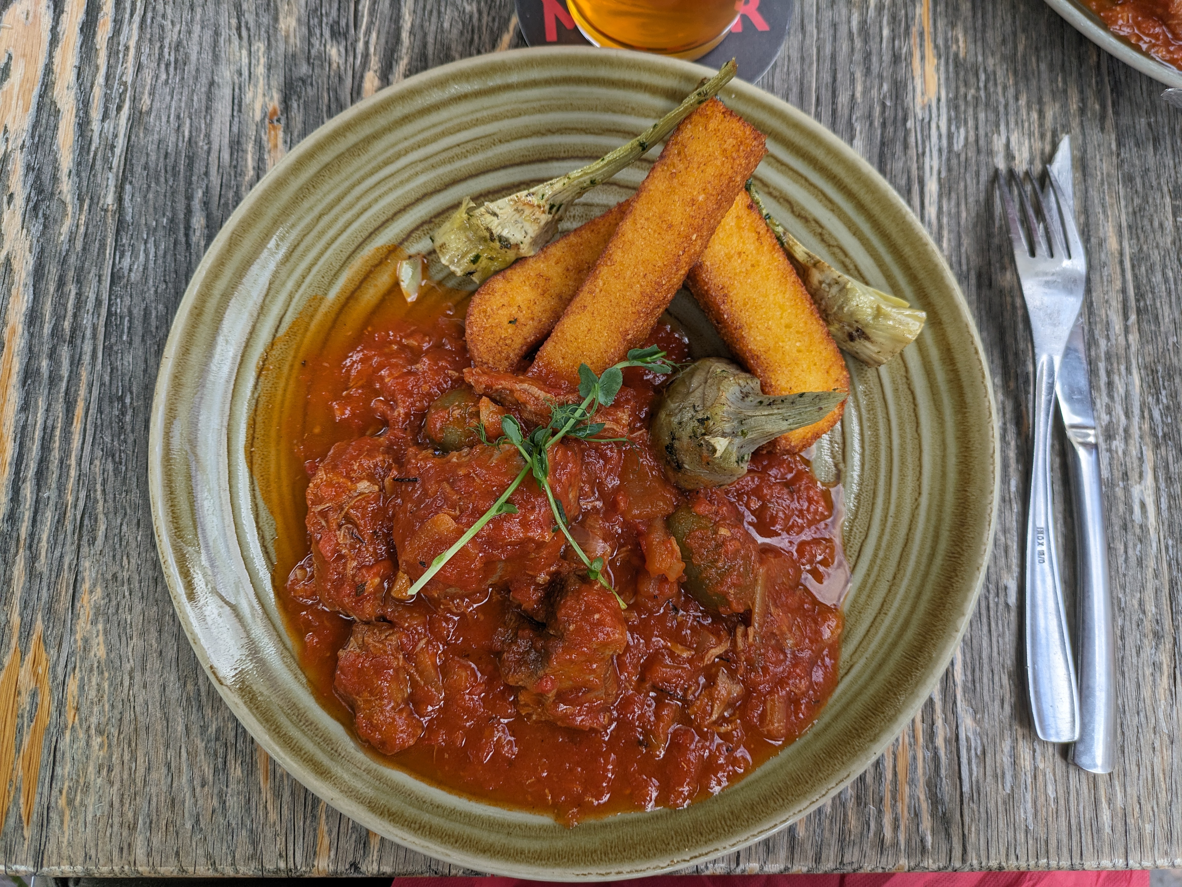 Pas que des Knacks frites (menu enfant a 10€ avec sirop et glace)! Très très bon gnochis de polenta veggie