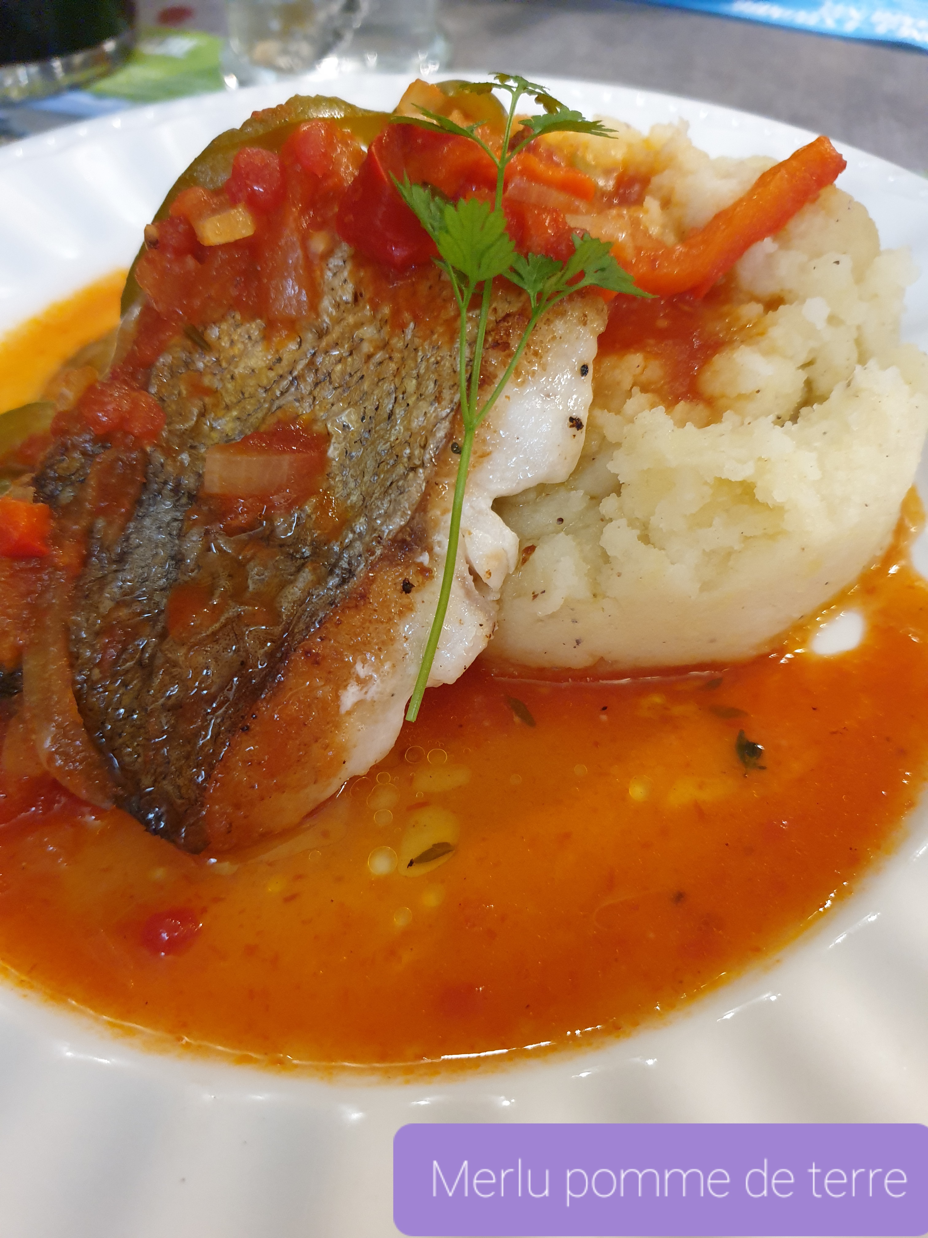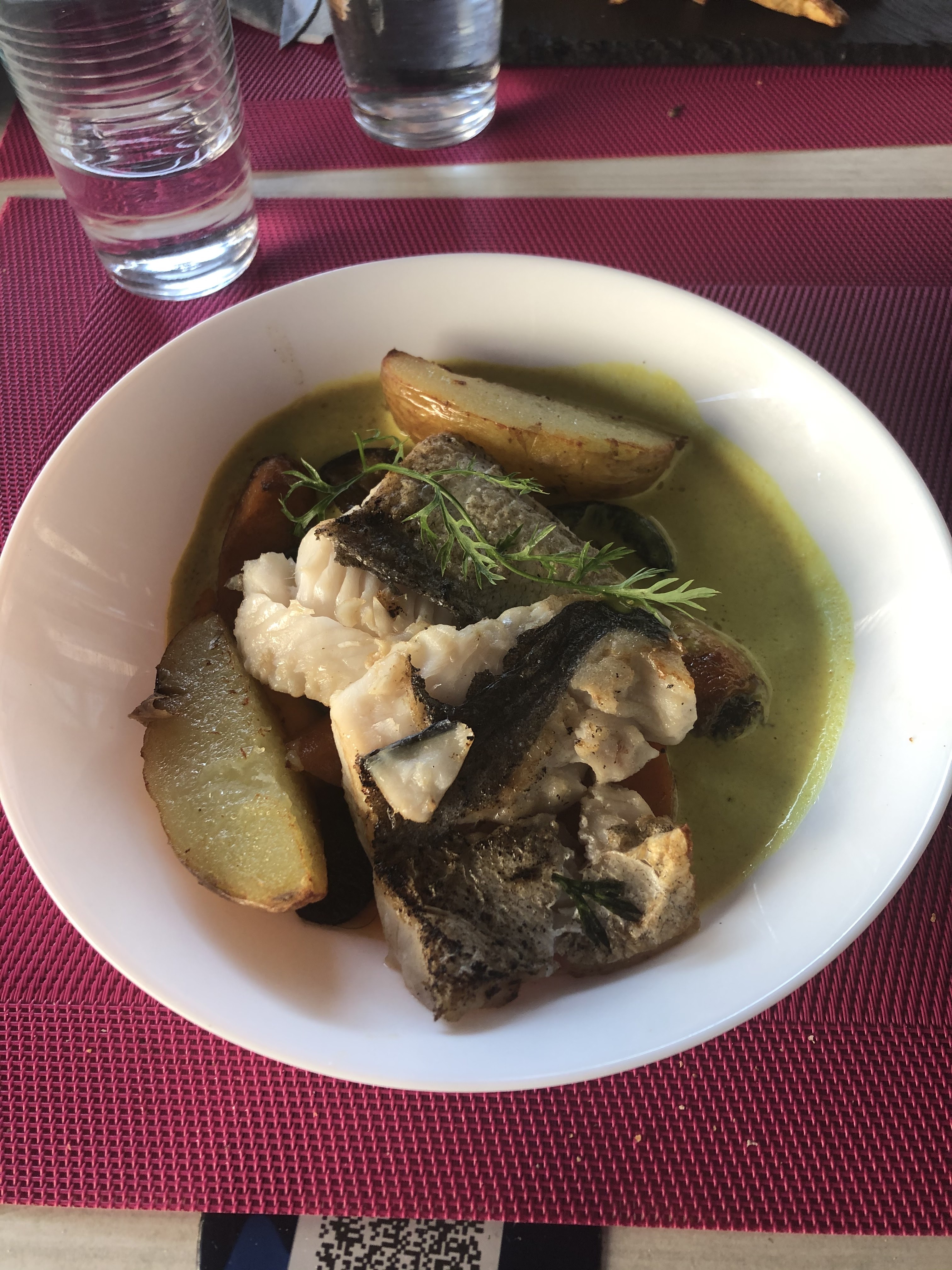 Très bon déjeuner poisson risotto et purée de Potimaron avec une très bonne sauce et fondant chocolat pour 16,50 €.