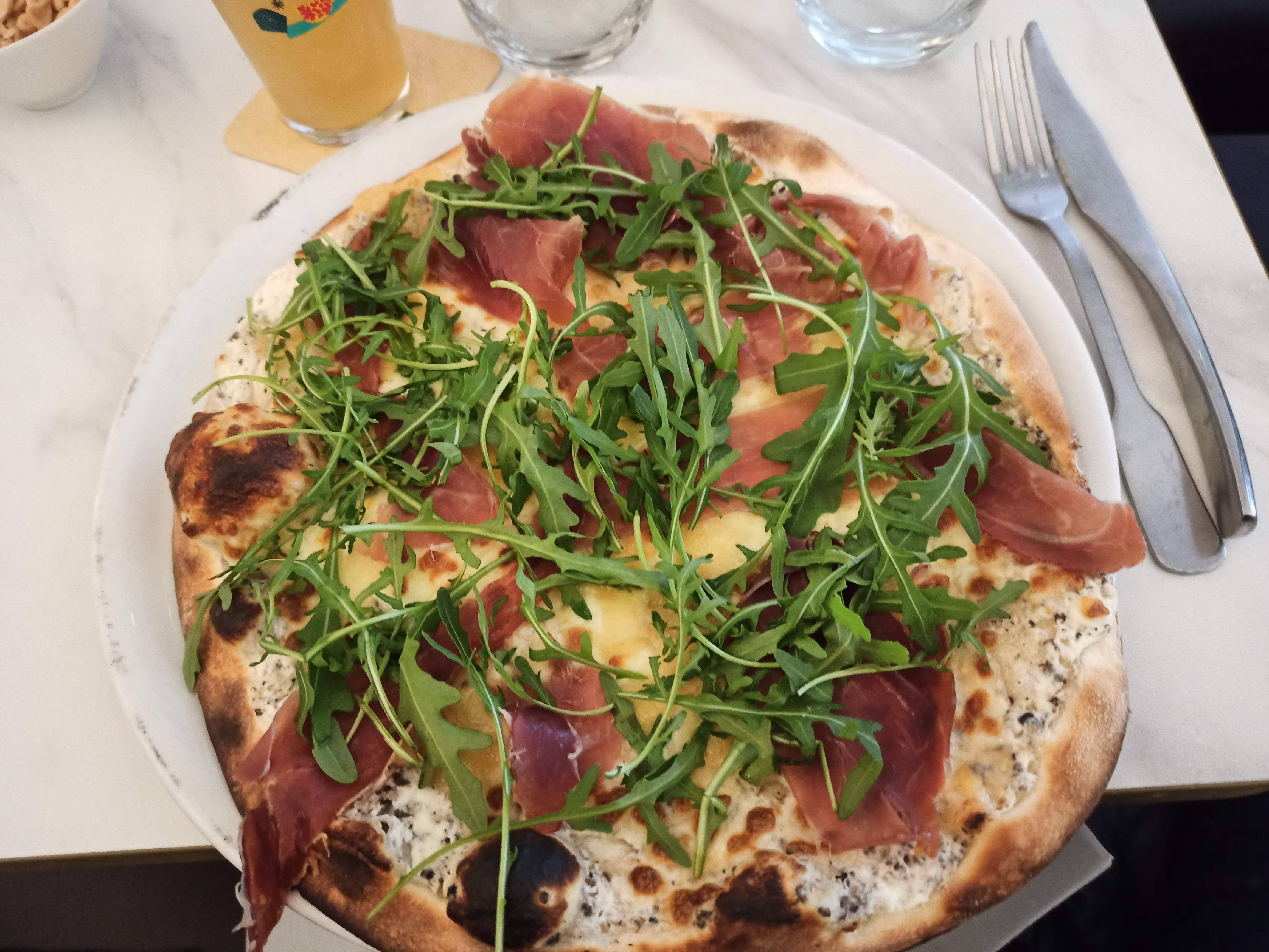Ambiance et personnel sympathique, Pas de mensonge sur le fait maison, Pizza au saumon avec de vrais morceaux de saumon frais.