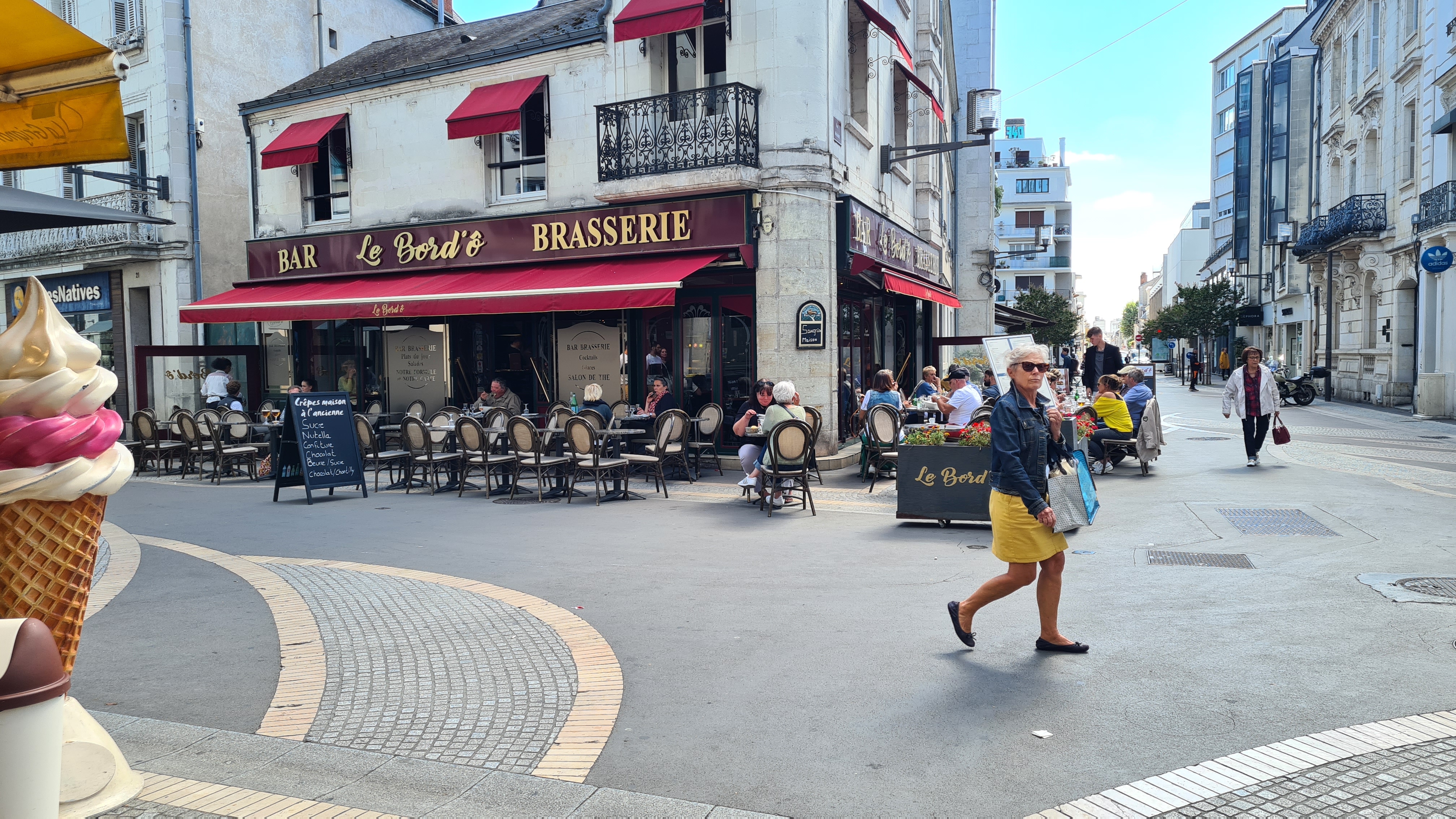 Brasserie classique rue de Bordeaux, terrasse parfaite pour regarder les passants 😁