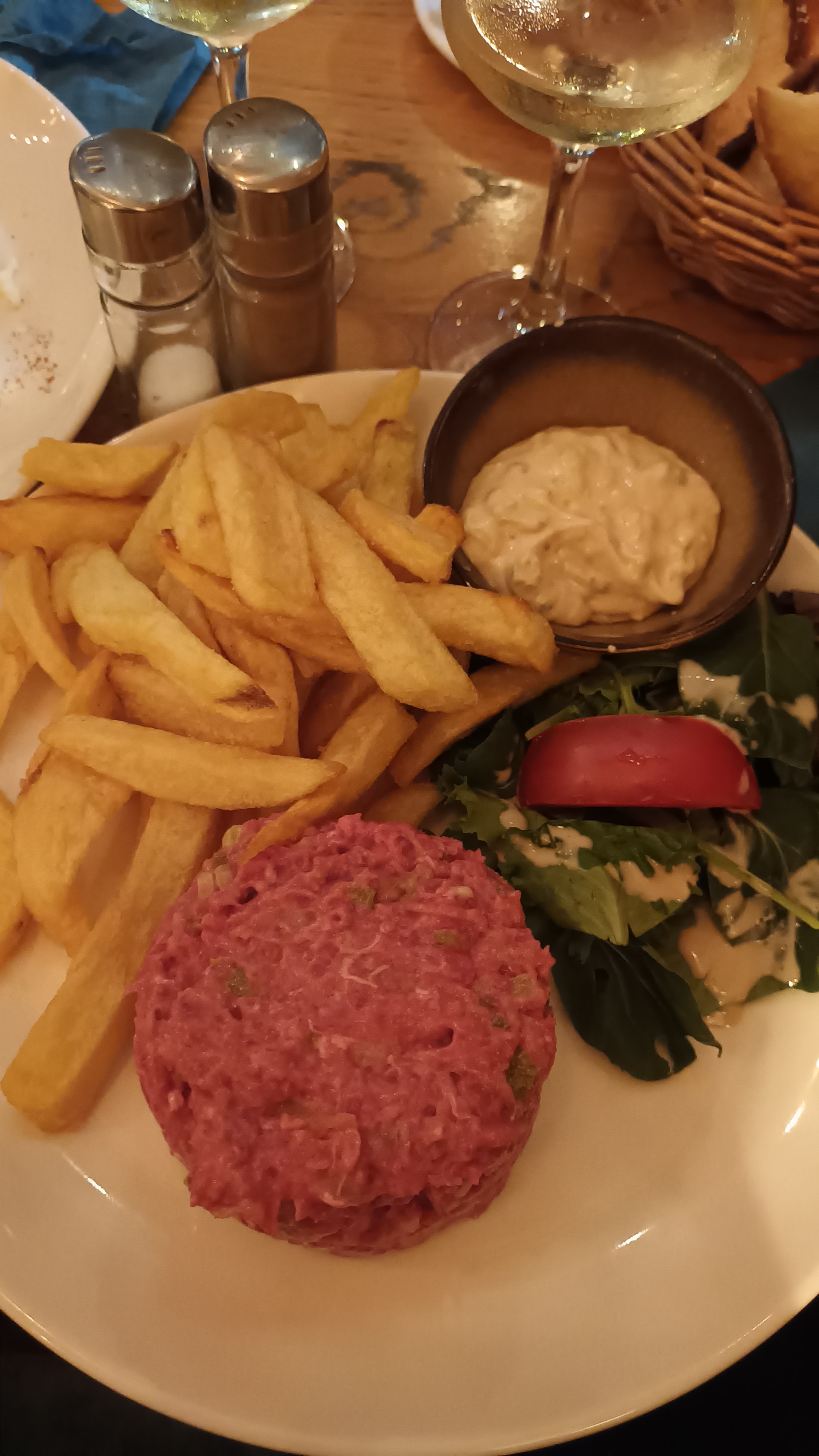 Je suis surpris de voir autant d'étoiles. Steack tartare tellement haché qu'il était tout pâteux... frites correctes mais sans plus...Ambiance bistrot de quartier.... Pas grand chose qui donne envie de revenir. Cordialement .