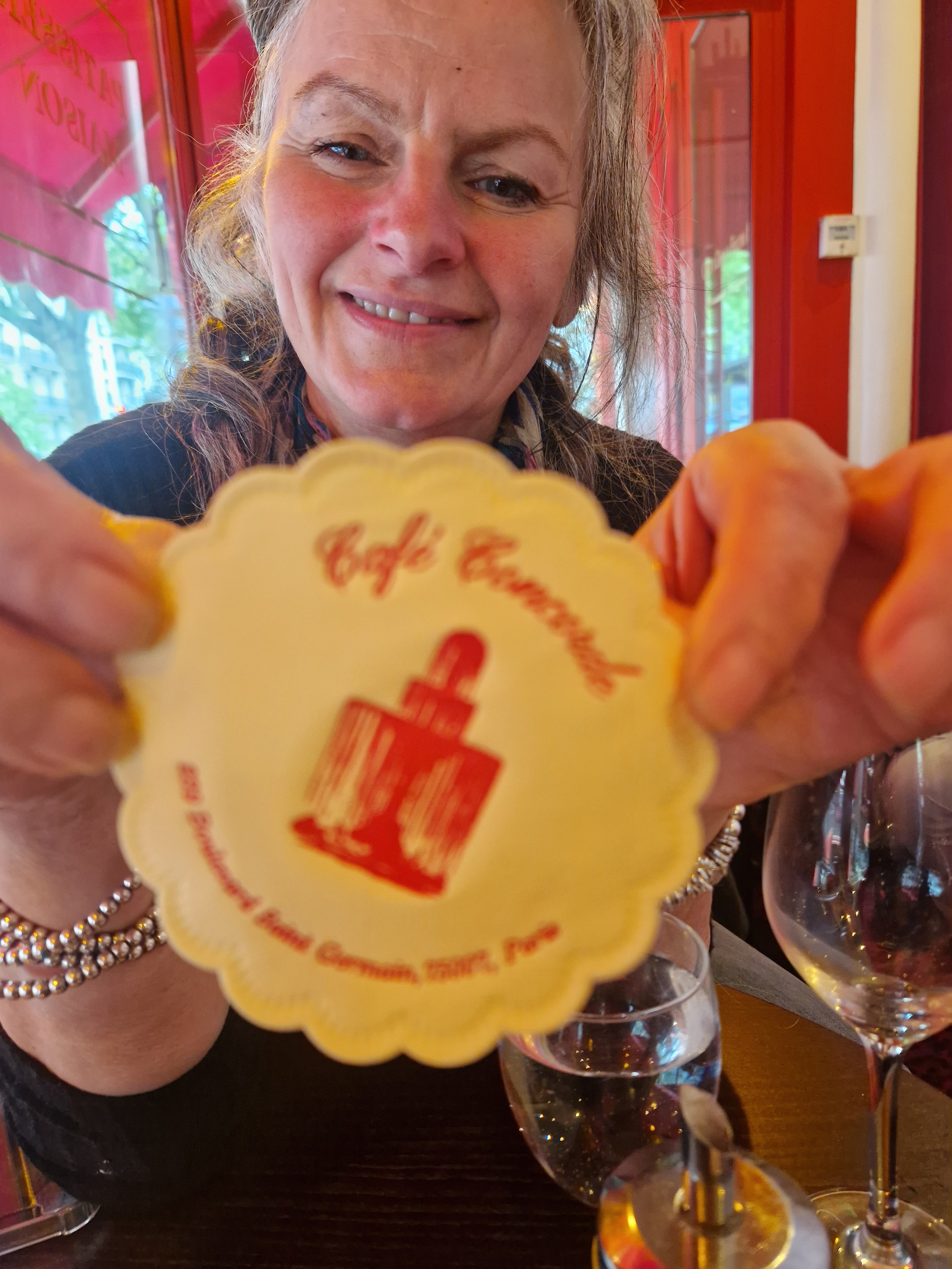 C'est écrit La Terrasse Saint-Germain à l'extérieur… bref (haussement d'épaules), c'était notre premier arrêt dans un café après une longue marche jusqu'aux Champs Elysées. Michelle avait une salade César très fraîche et j'ai commencé ma recherche de la meilleure mousse au chocolat. Cette mousse était bonne mais pas époustouflante. La recherche continue donc.