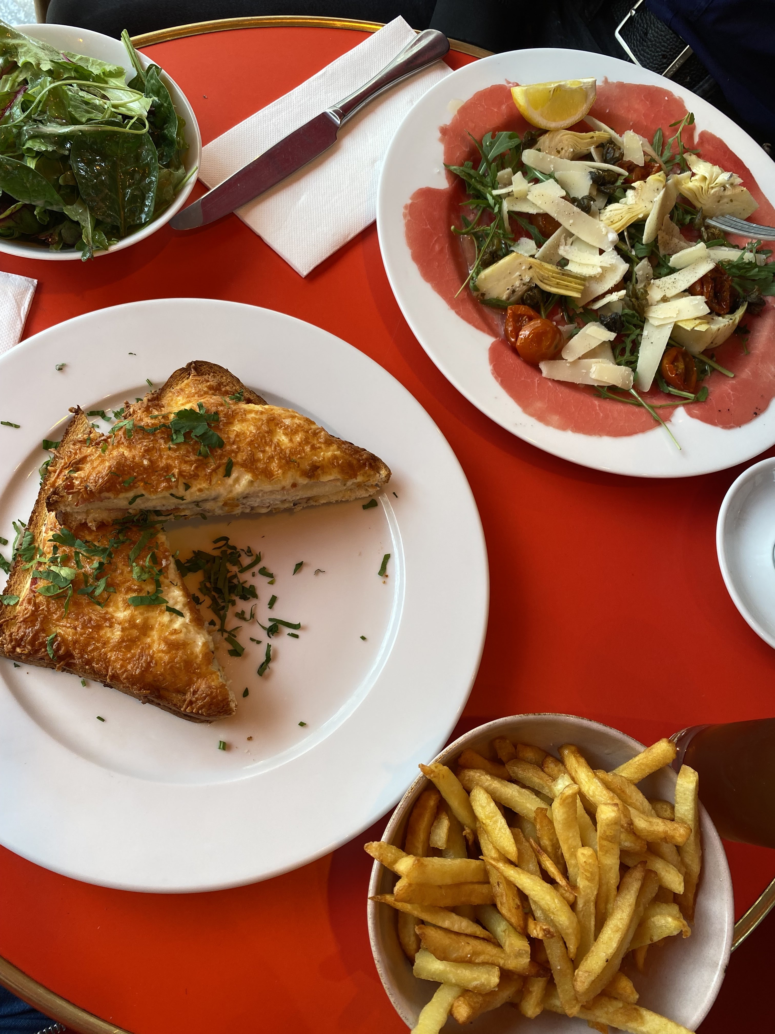 Je me suis arrêtée lors d’une ballade au Café Concorde pour un déjeuner avec mon ami. Nous nous sommes installés sur la terrasse semi-couverte dans ce quartier charmant. Le service était très agréable et vraiment rapide. Nous avons commandé un croque-Monsieur à la truffe avec des frites et un carpaccio de bœuf avec de la salade. C’était bien équilibré dans les saveurs, nous avons vraiment apprécié ce repas. Je reviendrai sans doute une prochaine fois pour tenter un dessert. Je recommande cette adresse 😊.