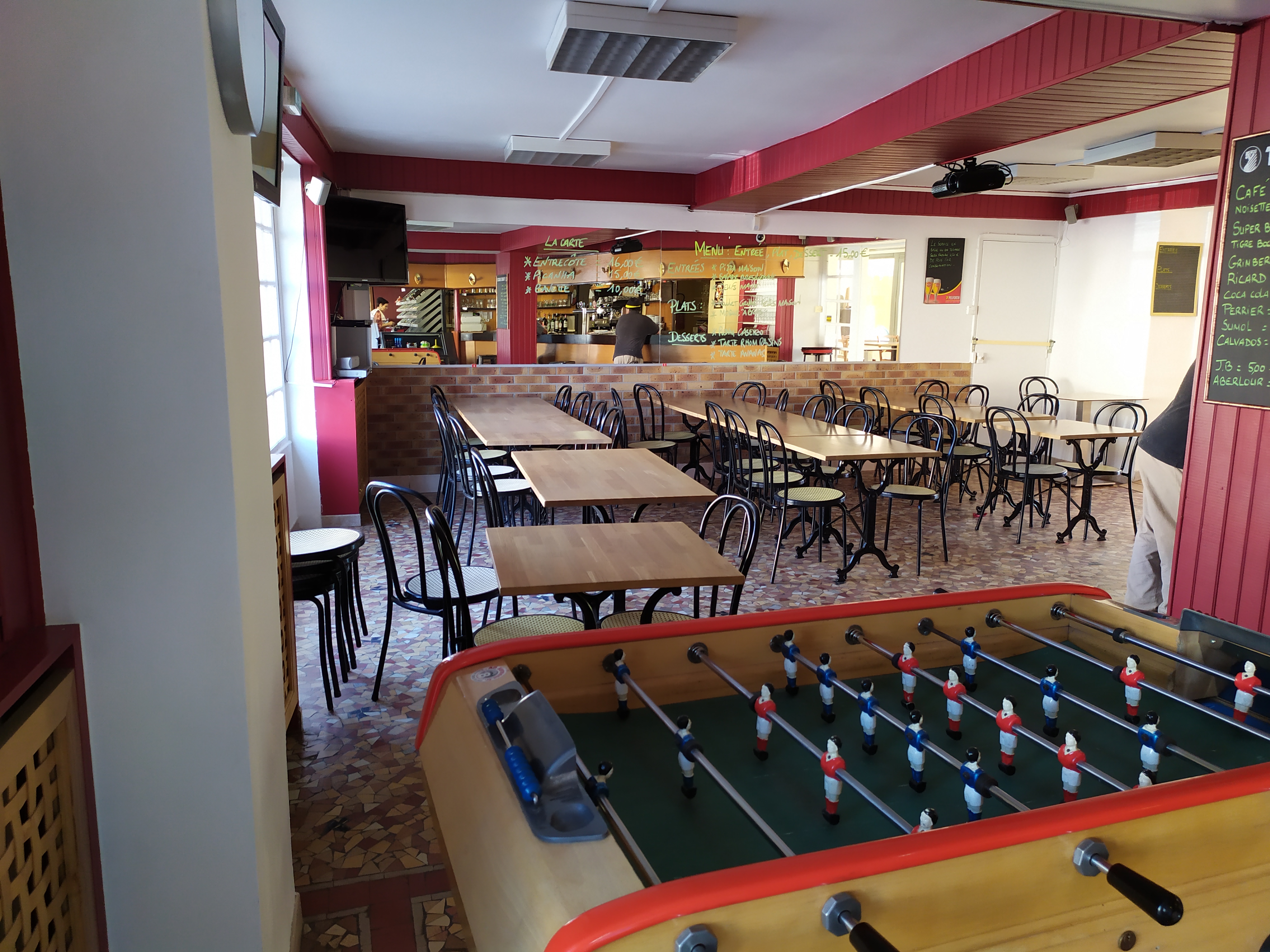 Une belle terrasse intérieure, non indiquée à l'extérieur Des cafés à prix d'ami (1,20€ servi à table) Un accueil chaleureux Un grand écran géant pour suivre les événements sportifs