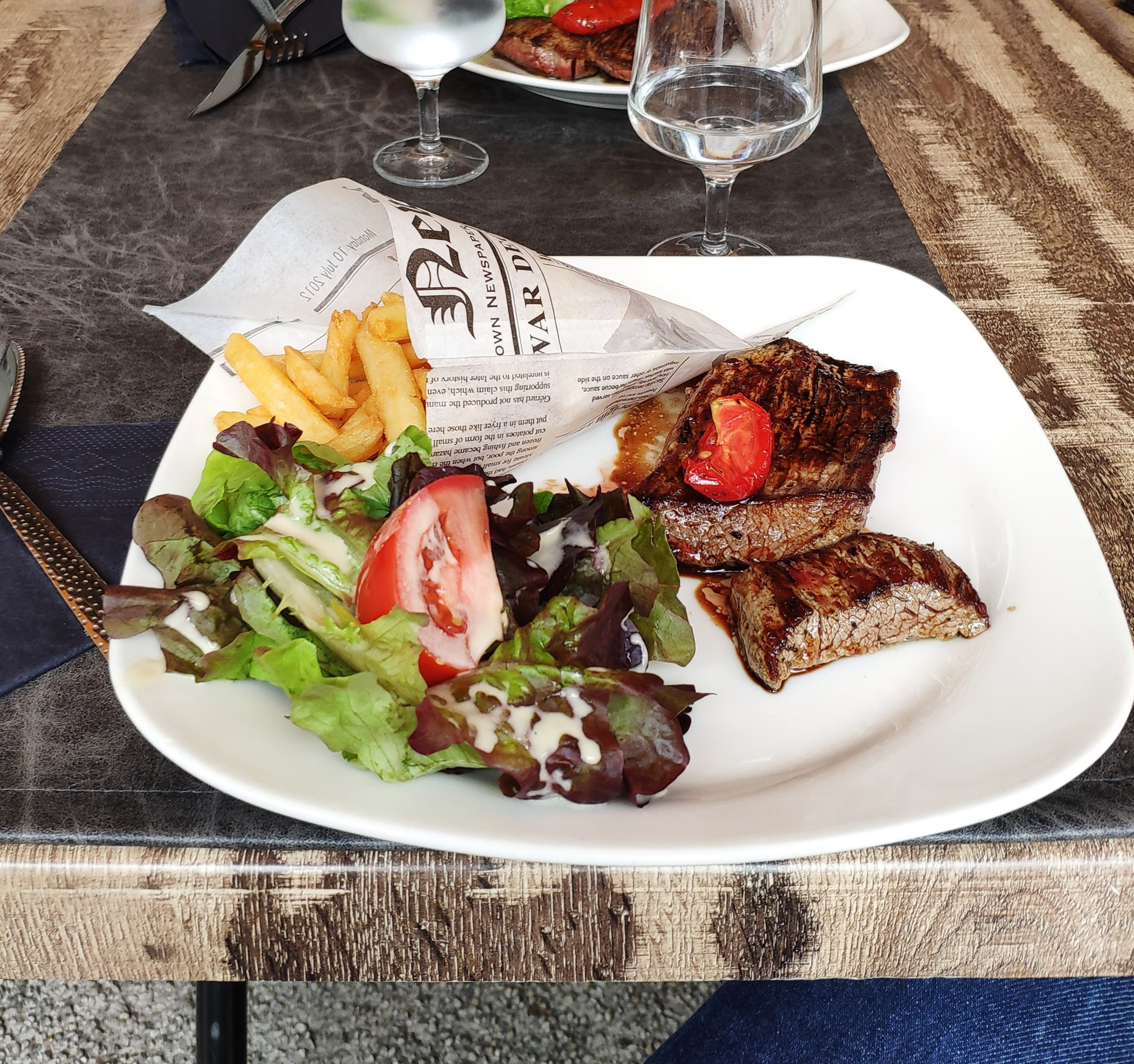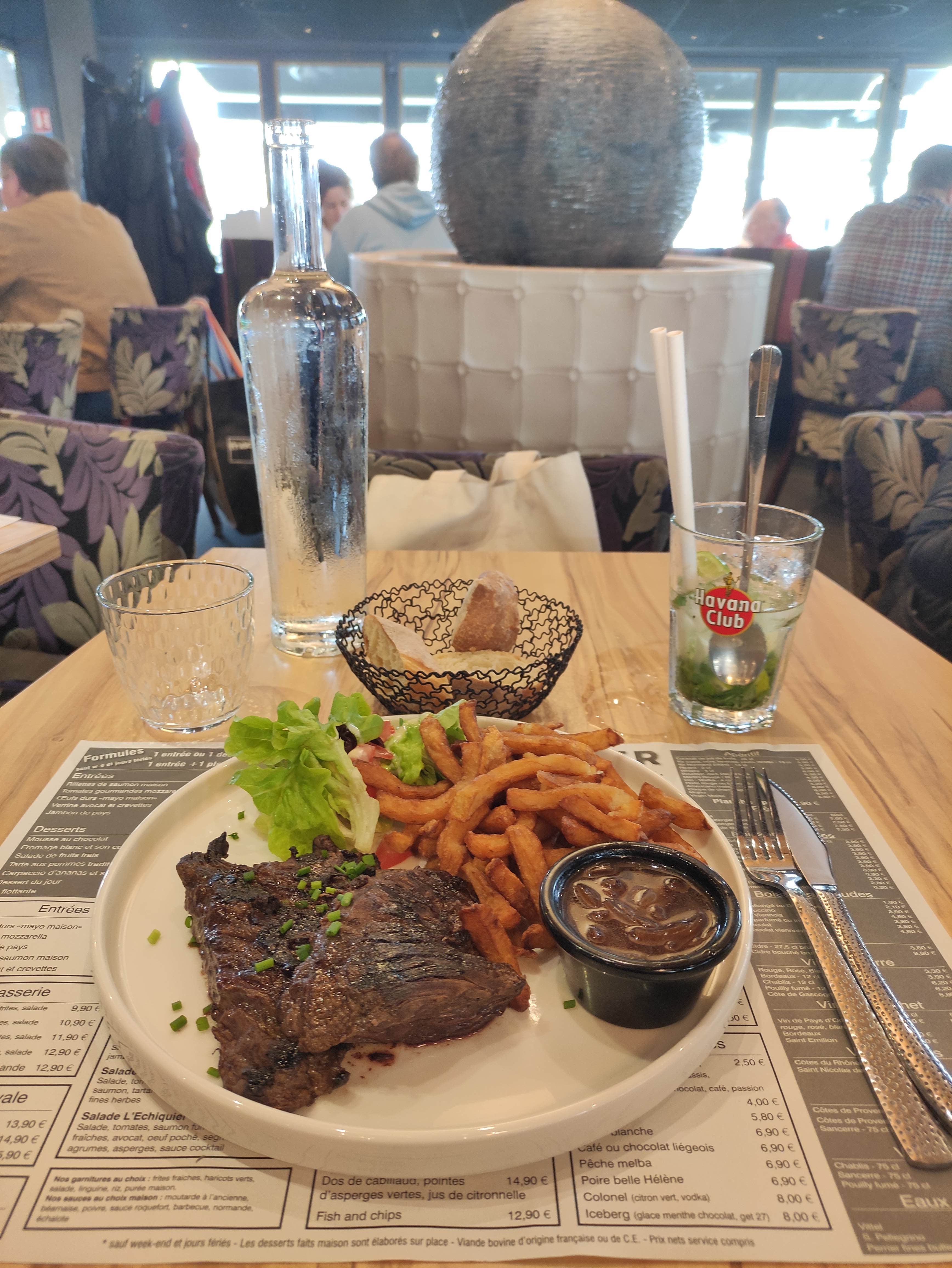 Nous sommes allés dans ce restaurant sur un coup de tête, et j'ai été surpris de l'accueil impeccable, et de la sympathie du serveur tout au long de mon repas. Un large choix concernant la carte, mon plat était délicieux, seul petit bémol c'est que l'accompagnement (ici des frites) , était en un peu trop grosse quantité pour moi sinon tout était parfait, je recommande