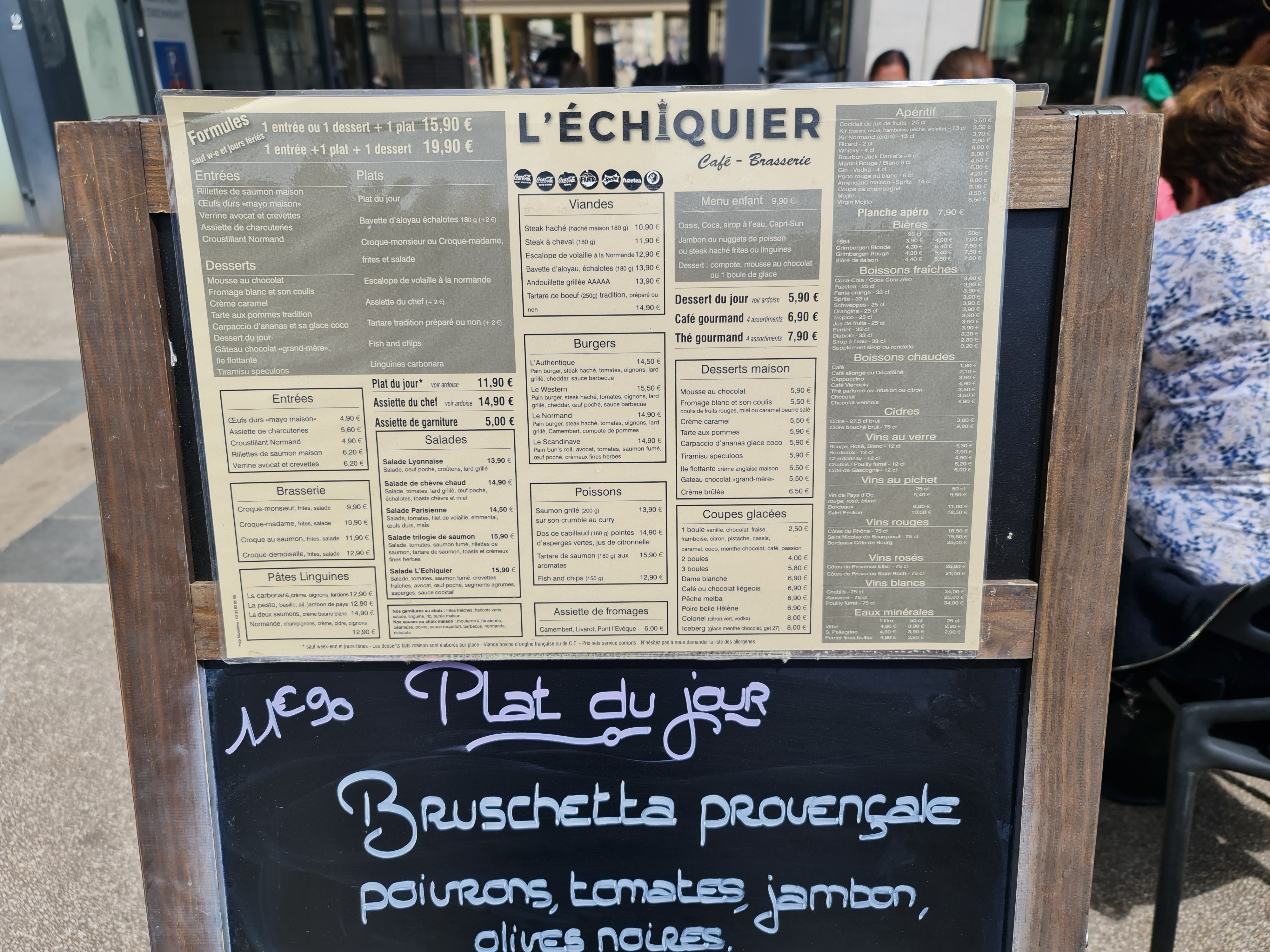 Je viens maintenant régulièrement déjeuner à l échiquier. Le service est excellent et hyper réactif. Côté cuisine, je suis toujours aussi satisfait avec en particulier la trilogie de saumons. Dans l hypercentre de Rouen, c est une très bonne table.