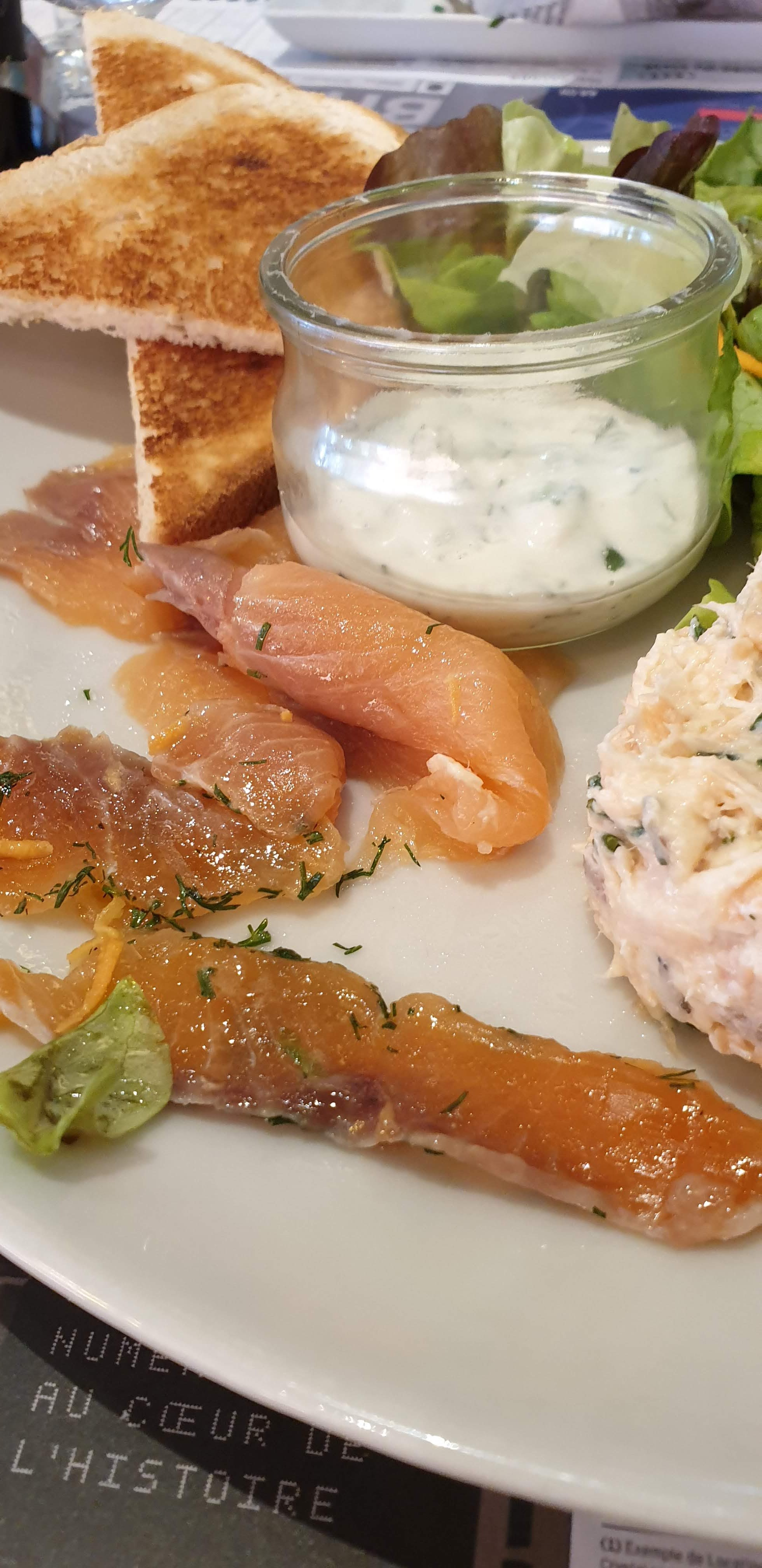 Assiette de trois saumons, il faut les chercher, par contre le tartare il y en a mais pas terrible au prix de l assiette je suis déçue
