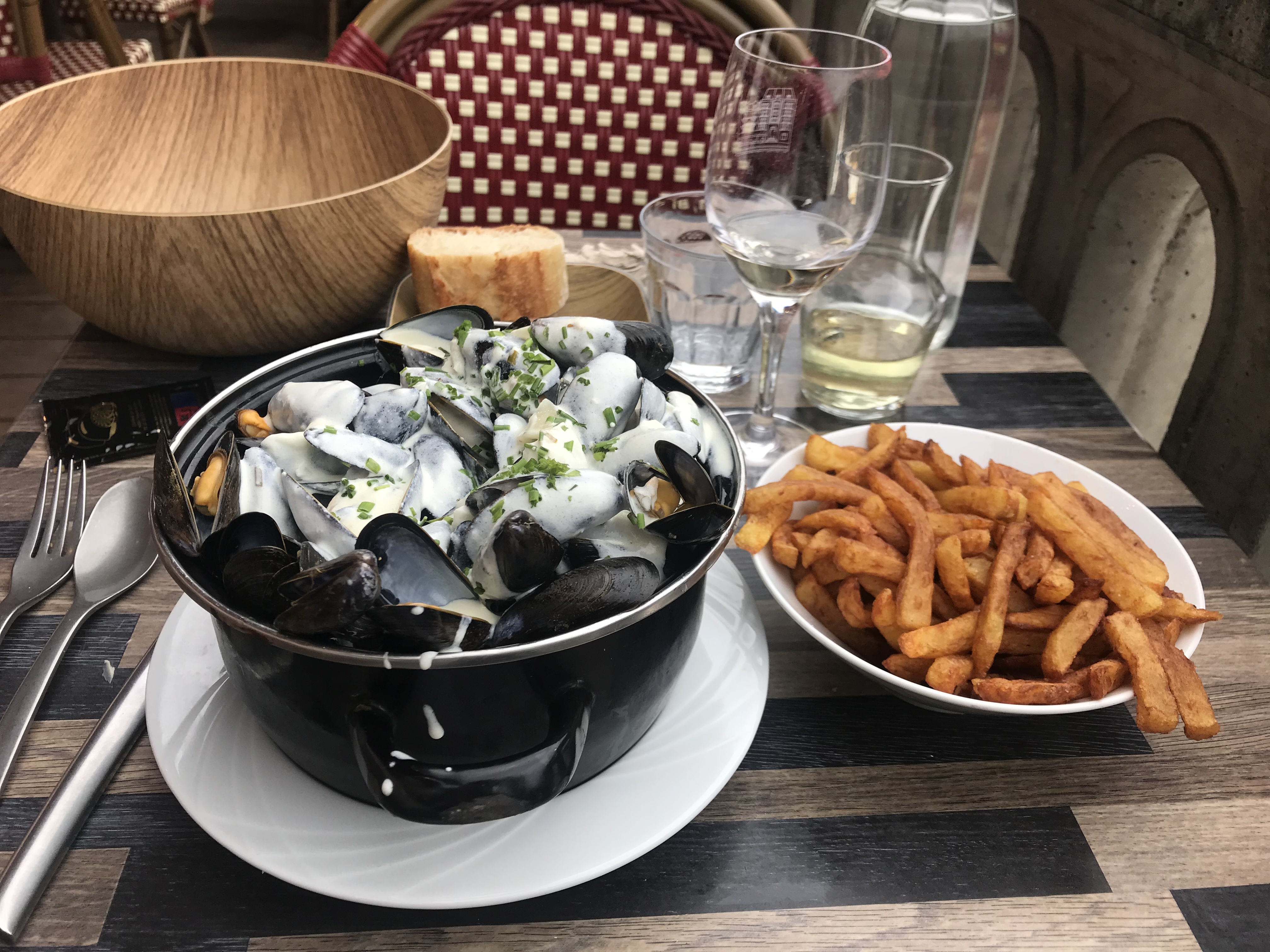 Les Moules marinières avaient peu de goût et pas un goût de vin blancs. Mon mari avait pris la Lotte, plat très bien présenté, bon mais sans plus. L’emplacement est super et notre serveur très attentionné au vue de mes allergies.
