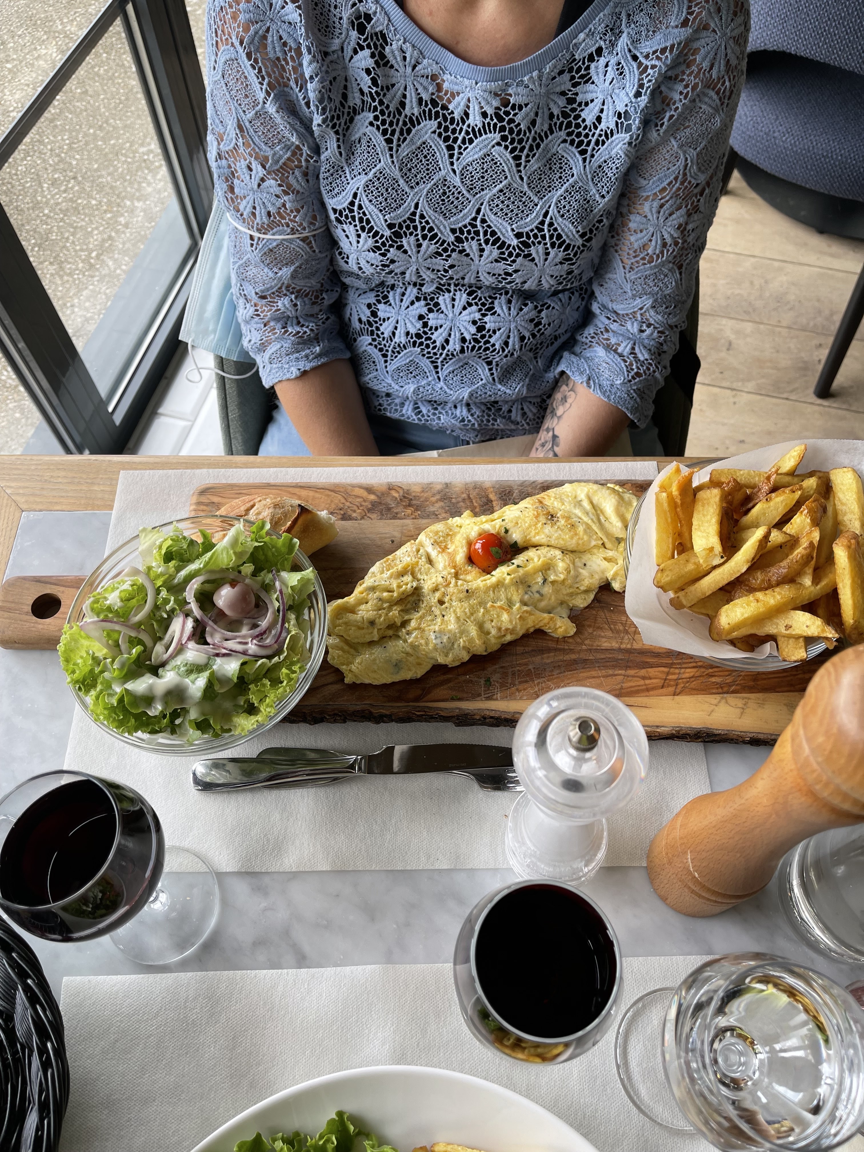 Accueil et service très bien (c'est vrai que c'est étonnant que personne n'ait son masque). Selon les plats, les prix sont corrects ou un peu trop élevés. Ayant pris un carpaccio xxl, et voyant le commentaire plus bas, je me sens flouée. C'est vrai que le carpaccio xxl de saumon avocat n'avait de xxl que le nom, et je l'ai payé 19,50€ (!!). Cela dit, c'était très bon et bien assaisonné, les frites maison étaient bonnes. Le système de réservation en ligne est mauvais, il indique qu'il n'y a plus de disponibilité pour le soir même, alors que le restaurant est complètement vide. Il faut appeler (mais après 19h), pour réserver dans ce cas. En soir en semaine, ce n'est pas la peine, vu les tables dispos dans la salle. -1 étoile pour les pratiques commerciales sur les prix