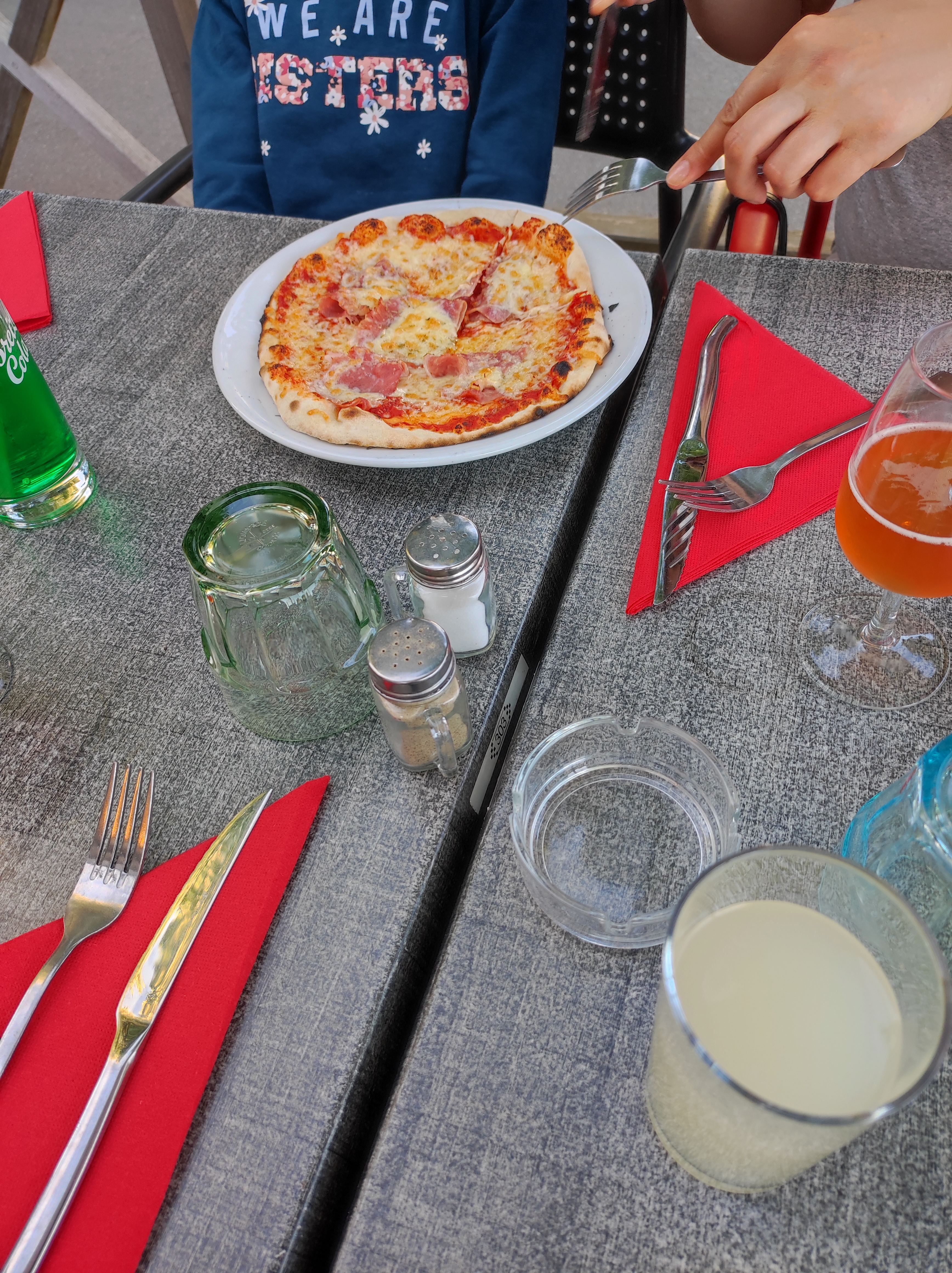 Pizza 🍕 copieuse et délicieuse. Une serveuse très professionnelle et souriante. Nous reviendrons en famille 😊