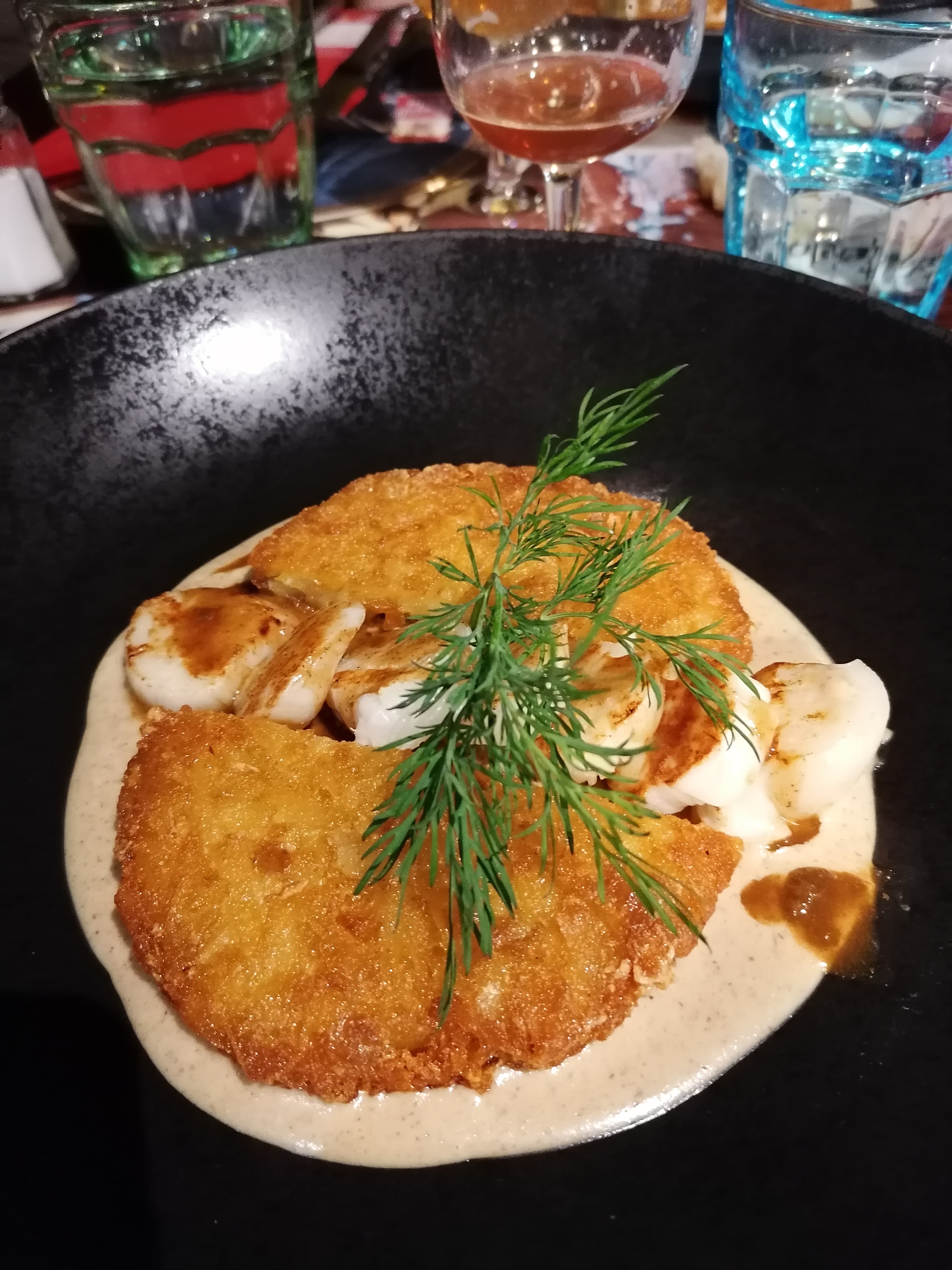 Nous y sommes allés après la crêperie pour boire un verre. Endroit très sympa le décors vaut le coup d'œil. Un personnel très agréable, pour le restaurant il faudra que j'y retourne pour essayer.