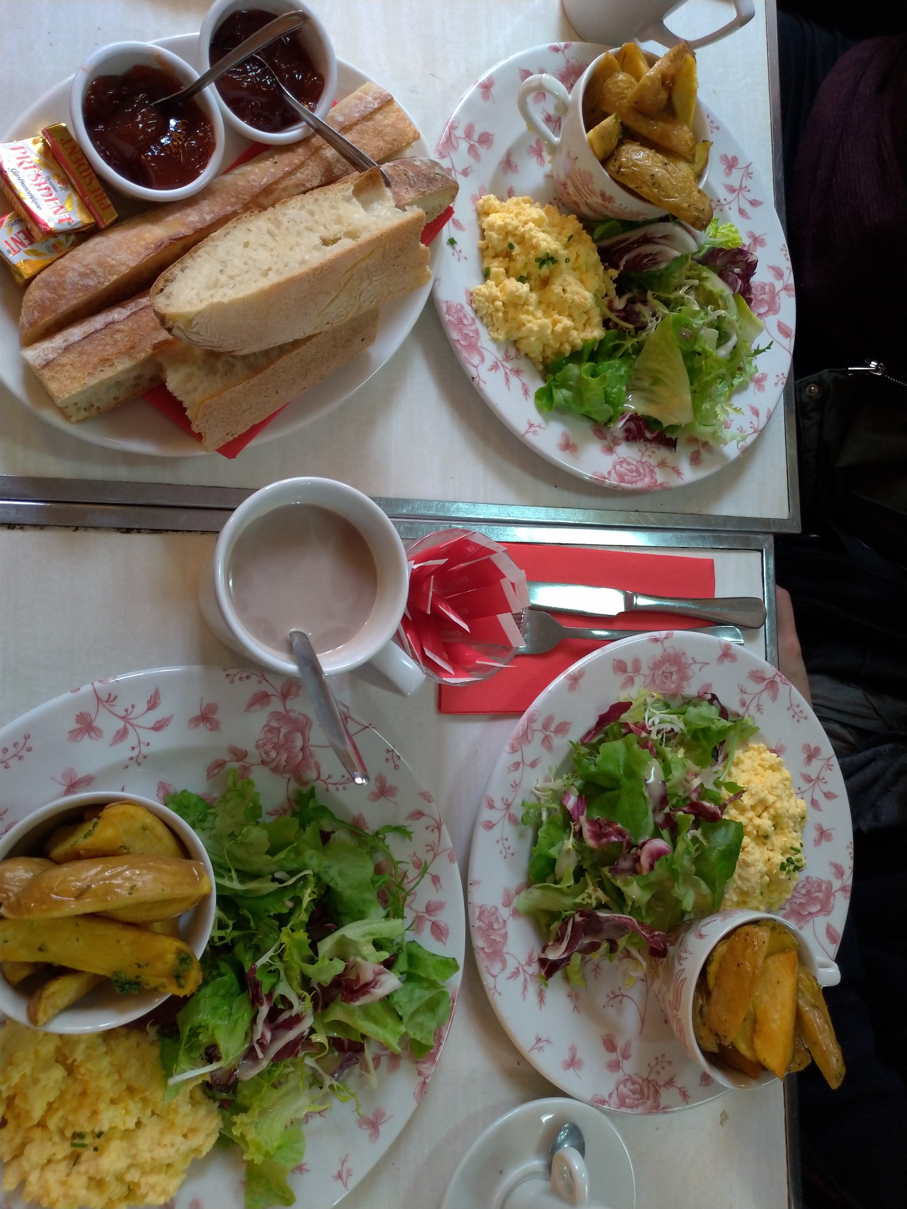 Un vrai café parisiens authentique avec des œufs mayonnaise et de la soupe à l'oignon. Un peu bondé pendant les vacances scolaires mais le service est rapide et efficace. Les serveurs arrivent même à se rappeller des prénoms des clients de passage !