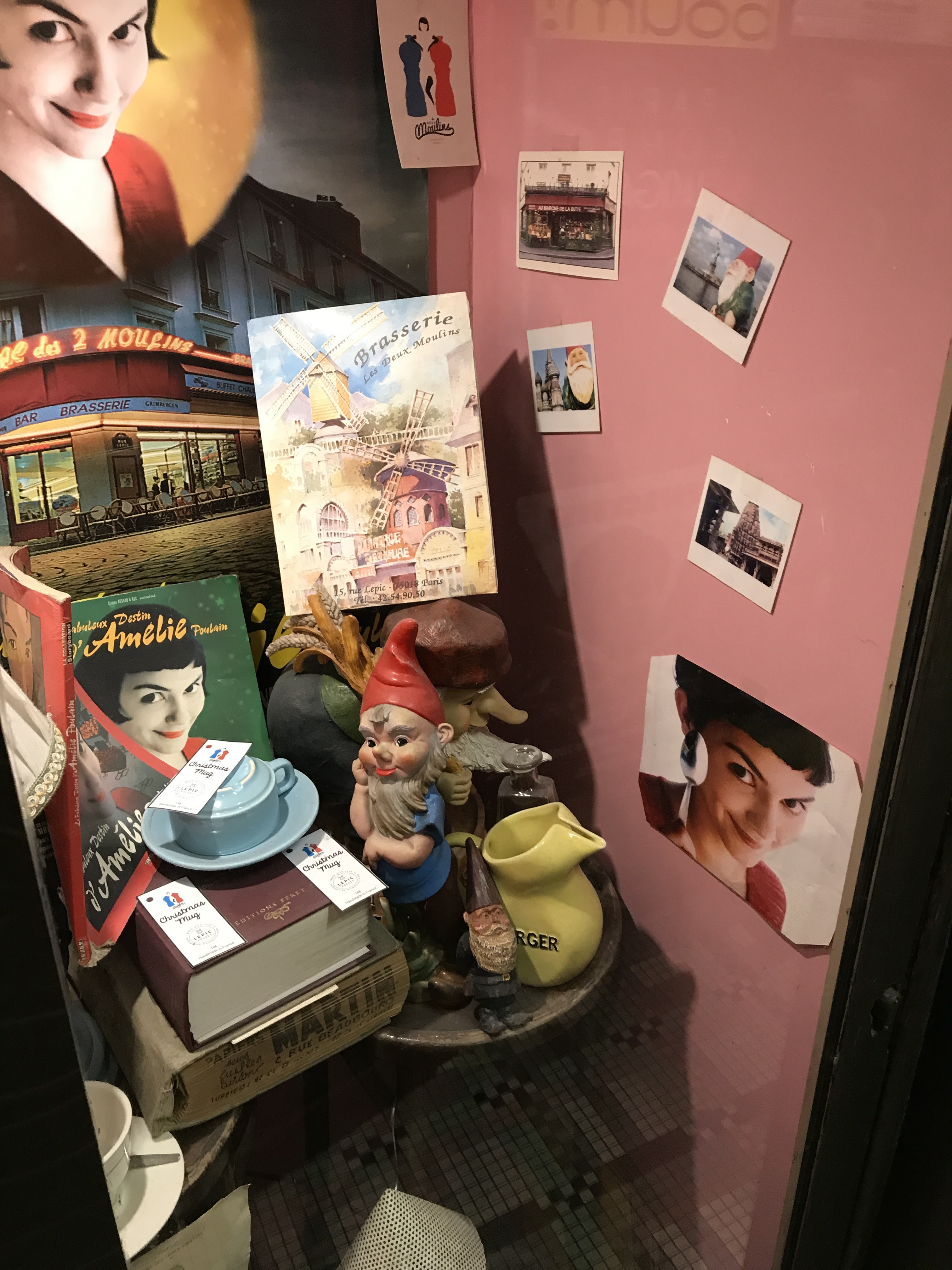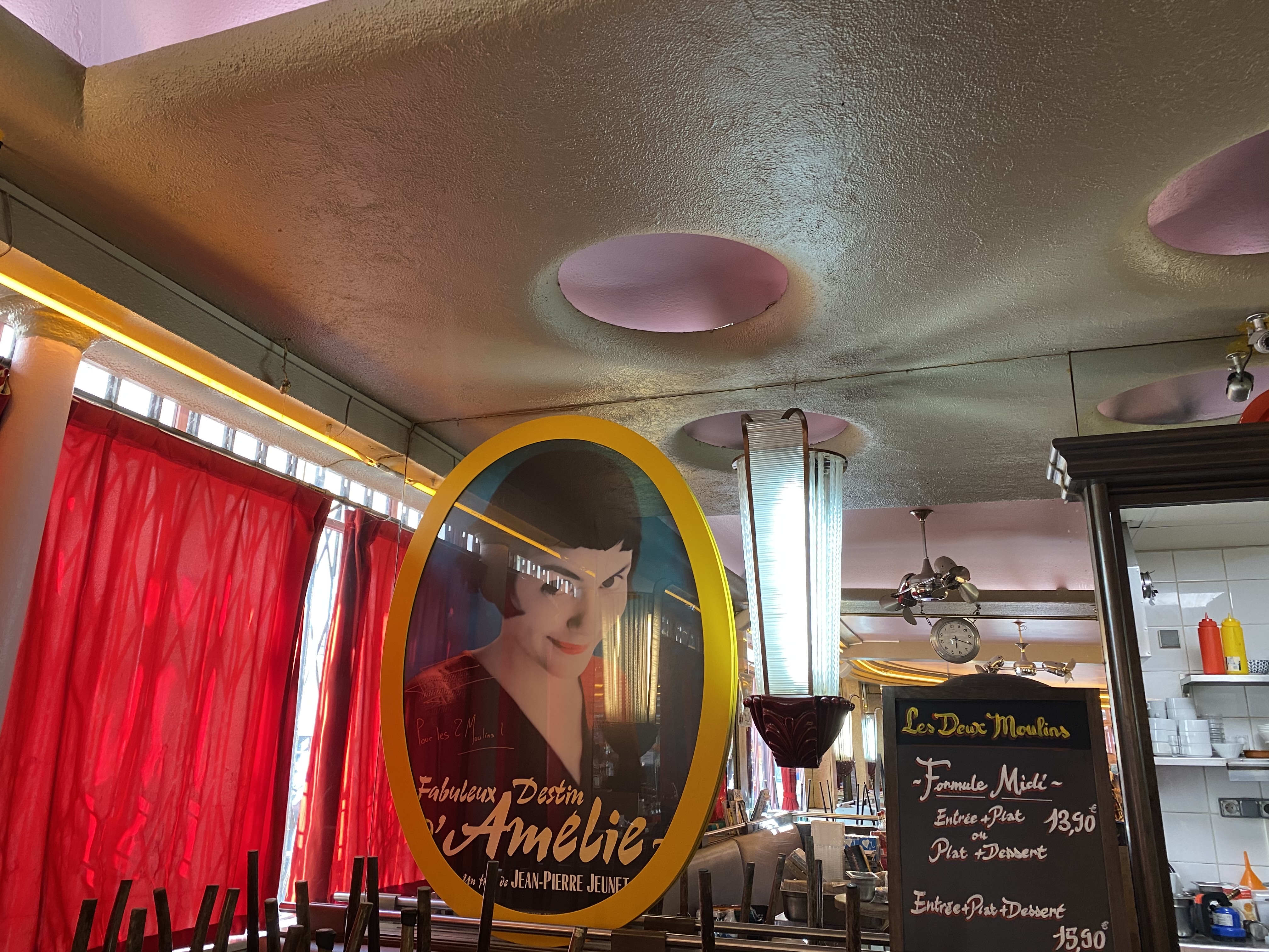 Je me faisais une joie de manger dans le café d'Amélie Poulain. Quelle déception !!!!! J'ai retrouvé la déco du film mais la nourriture et le service laissent franchement à désirer. Beaucoup trop cher. Je le déconseille fortement.