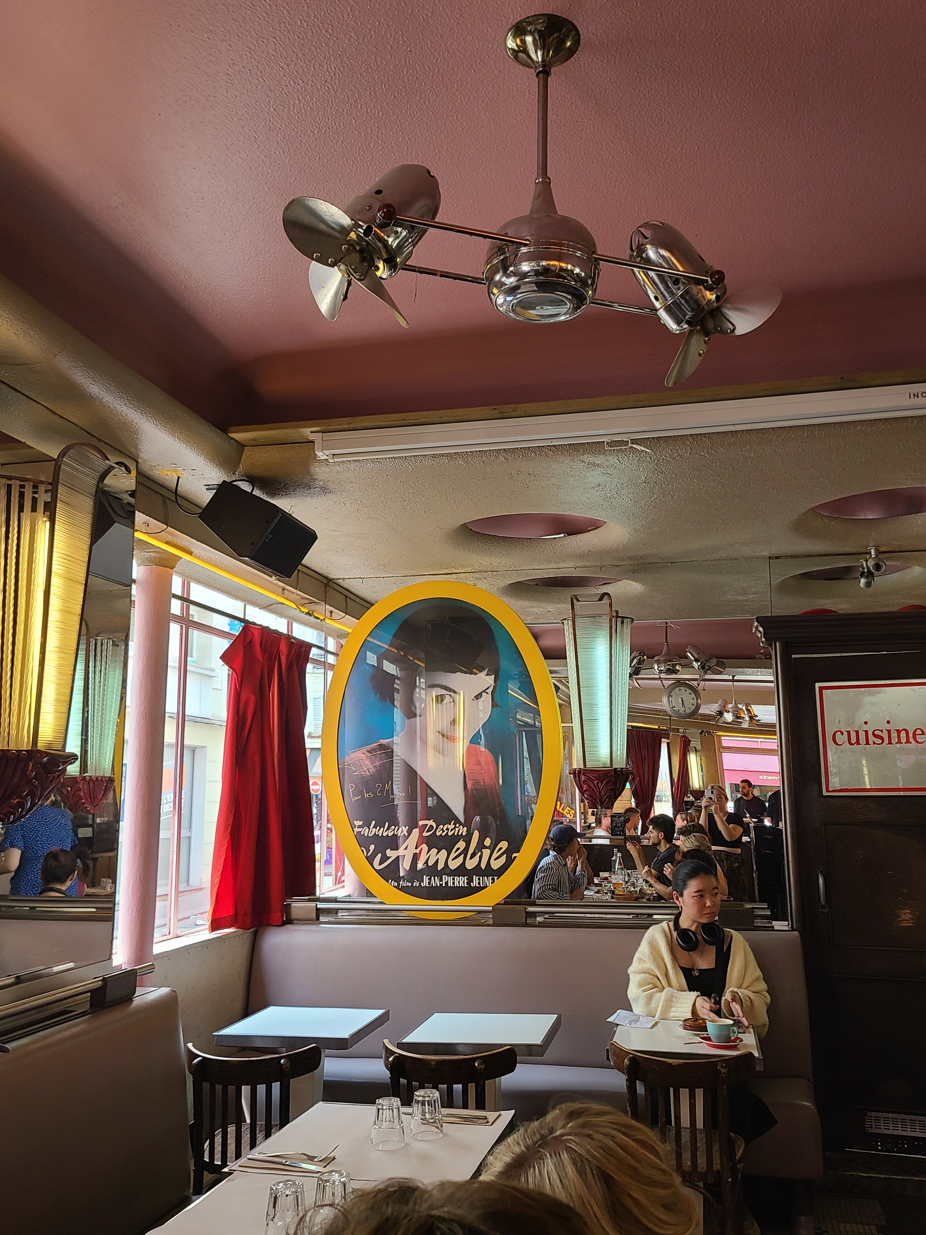 Petite déception de ce café. En effet, il paraît plutôt mal entretenu, certaines chaises cassées, légèrement sale et abîmé. Cependant, on retrouve l'ambiance du film Le Fabuleux Destin d'Amélie Poulain avec les décors d'origine. Les prix sont très salés, mais cela est compréhensible vu la popularité.
