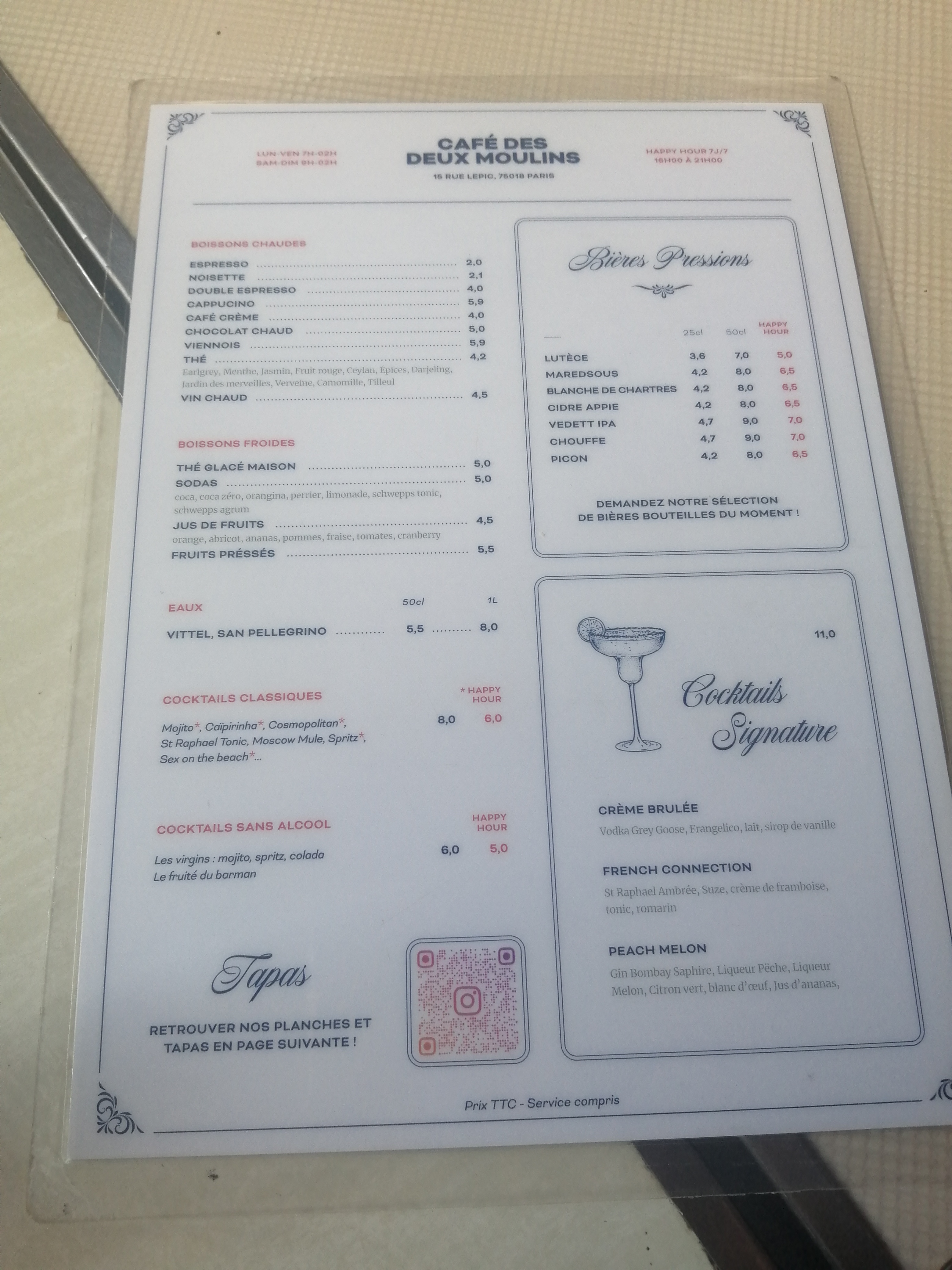 La brasserie d’Amélie Poulain ! Personnel sympathique je recommande