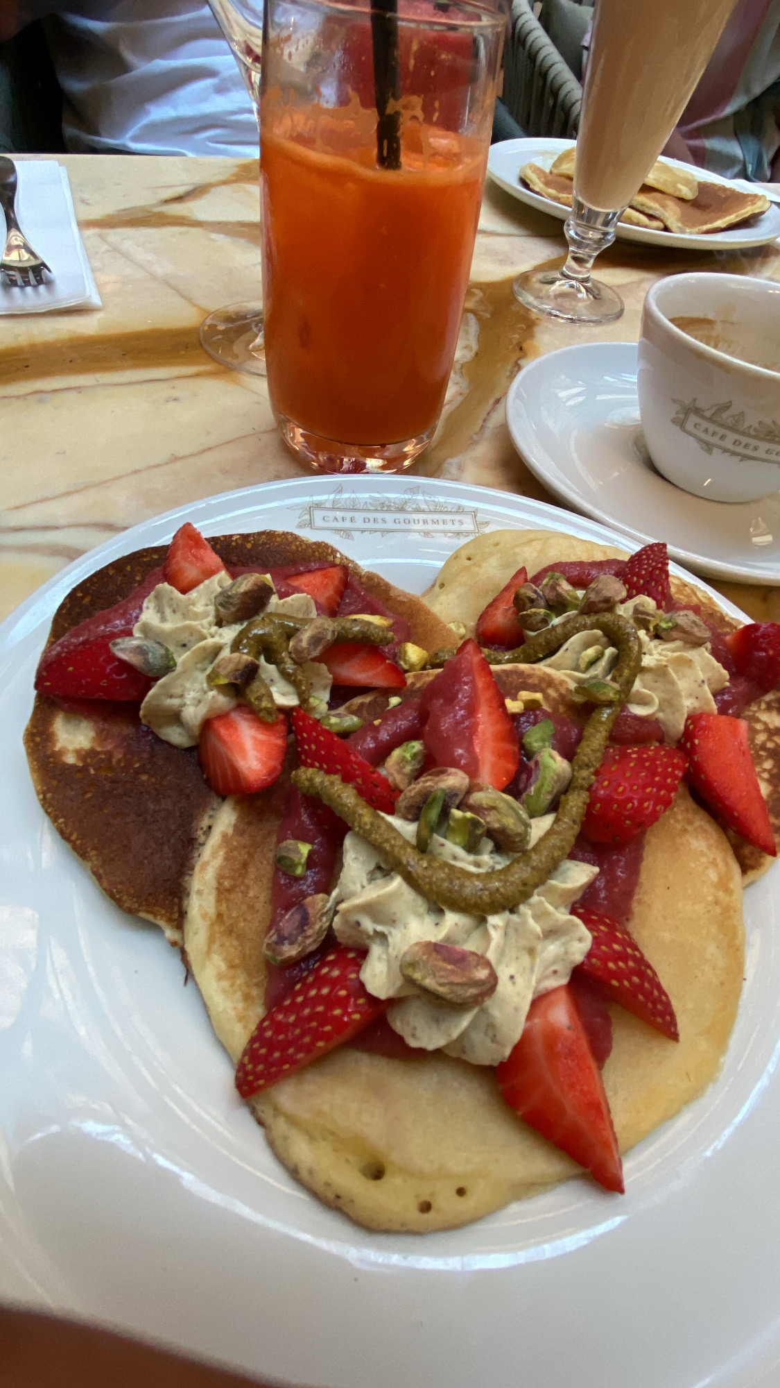 J’adore les brunch au café des gourmets , les oeufs sous toutes leurs formes , les gaufres … tout en fait La terrasse intérieur est très agréable