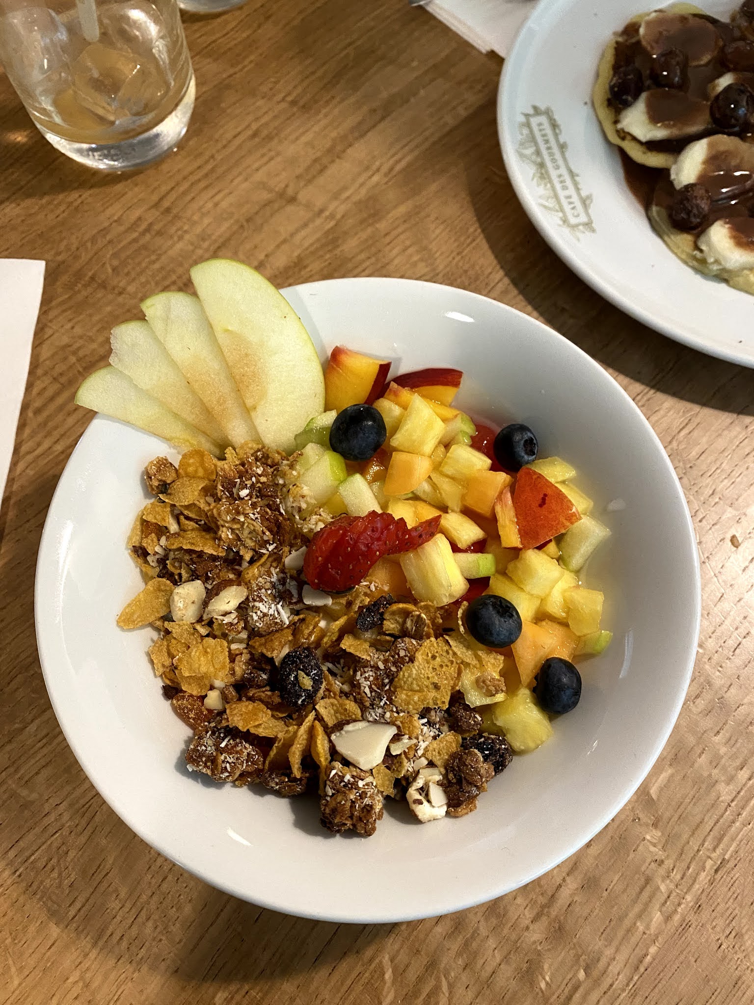 Lieu sympa et inattendu. On rentre par une petite porte et on découvre ce resto brunch où on peut manger à toutes les heures. Le service est très efficace et le personnel très gentil et accueillant. J'ai pris un bowl mais je reviendrai pour les pancakes maison!