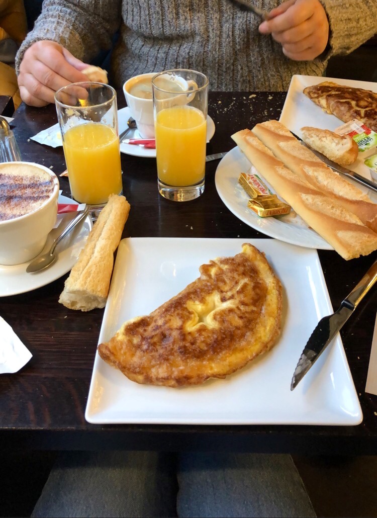 Petit déjeuner sur la terrasse très agréable. Le seul point négatif pour moi c'est le petit déjeuner très chère à mon goût. 13€ pour : 1 croissant ou tartine ( pas de tartine ce jour là 😱) 1 boisson chaude 1 jus d'orange (même pas pressé) 1 omelette jambon ou fromage Un morceau de pain avec l'omelette aurait été apprécié 😀 C'est dommage. Mon mari est parti à la boulangerie à 5 mètres du café pour me prendre du pain. Franchement très déçue.