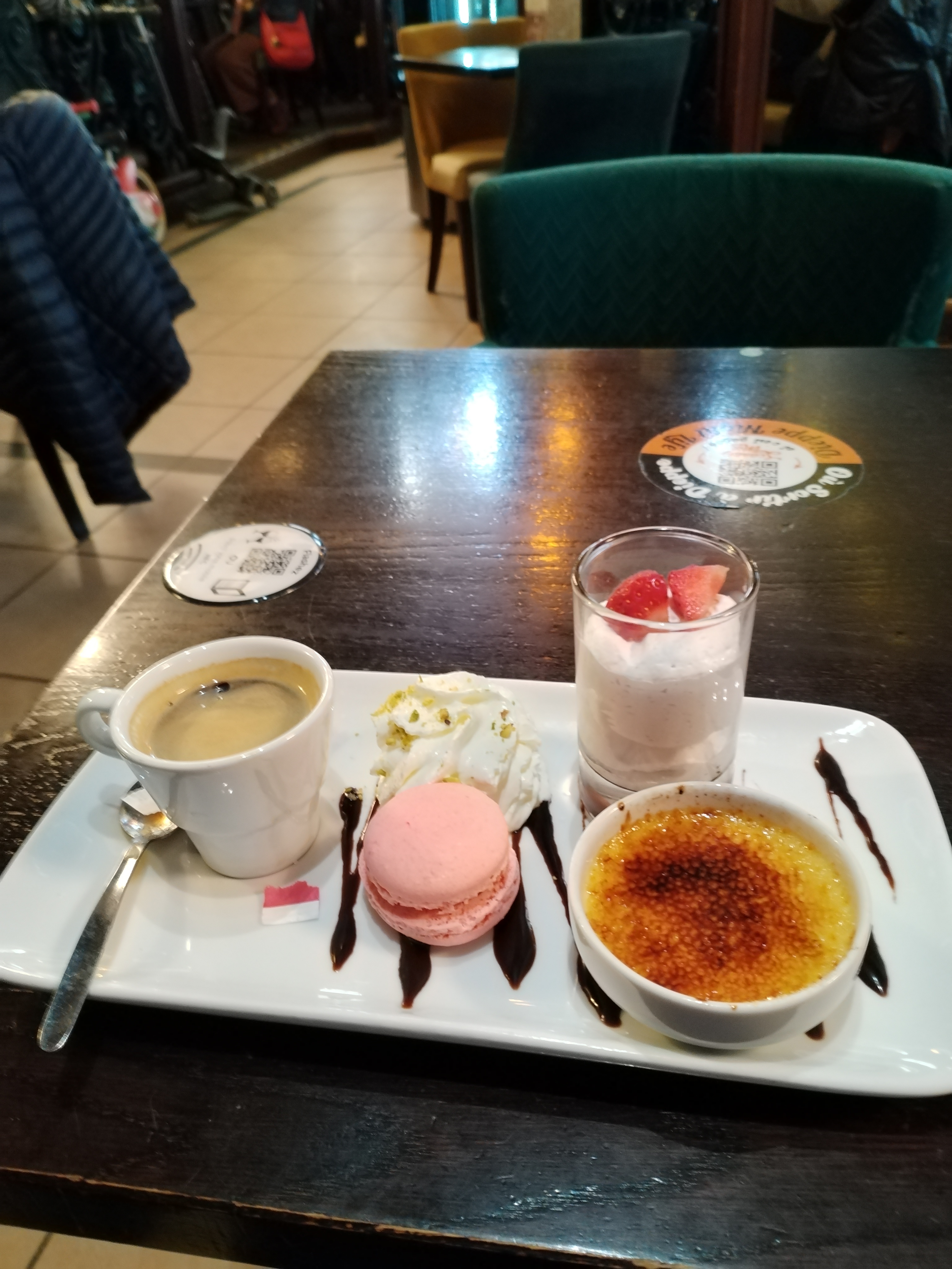 Bonjour, Accueil et service impeccable. Décor : magnifique rien a dire. Super Un café gourmand complet J' ai vue mieux qualité prix Très déçue, macaron tout le adore C est la 1ere fois que j' en vois dans un. Café Gourmand , manque chance je n' aime. Crème caramel ça allait a tas de chantilly Sans petite soucoupe ? Jamais vue Non je n y retournerais pas je me ferais Une joie !!!!! Déçue désolée Bonne journée