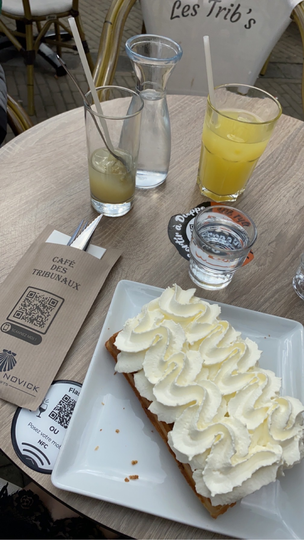 Le Café des Tribunaux vaut totalement le détour à Dieppe ! C'est un restaurant qui se démarque tant pour son ambiance que ça beauté. Nous avons passé une très agréable soirée pour un dîner en famille avec enfant, le personnel est très accueillant et au petit soin pour toute sa clientèle, un grand merci à notre serveur Mickael CR7 (selon la note) d'avoir pris soin de nous!