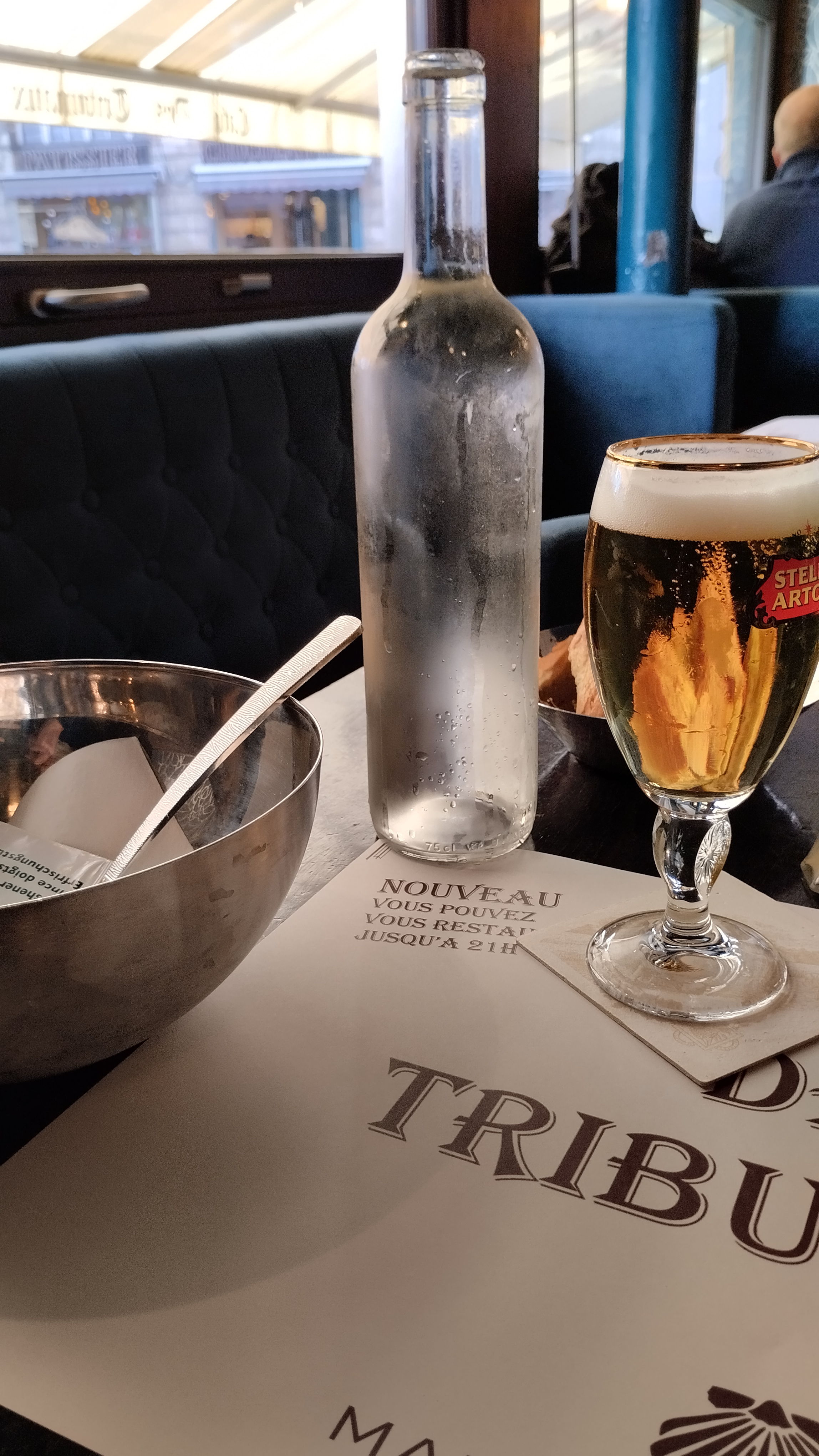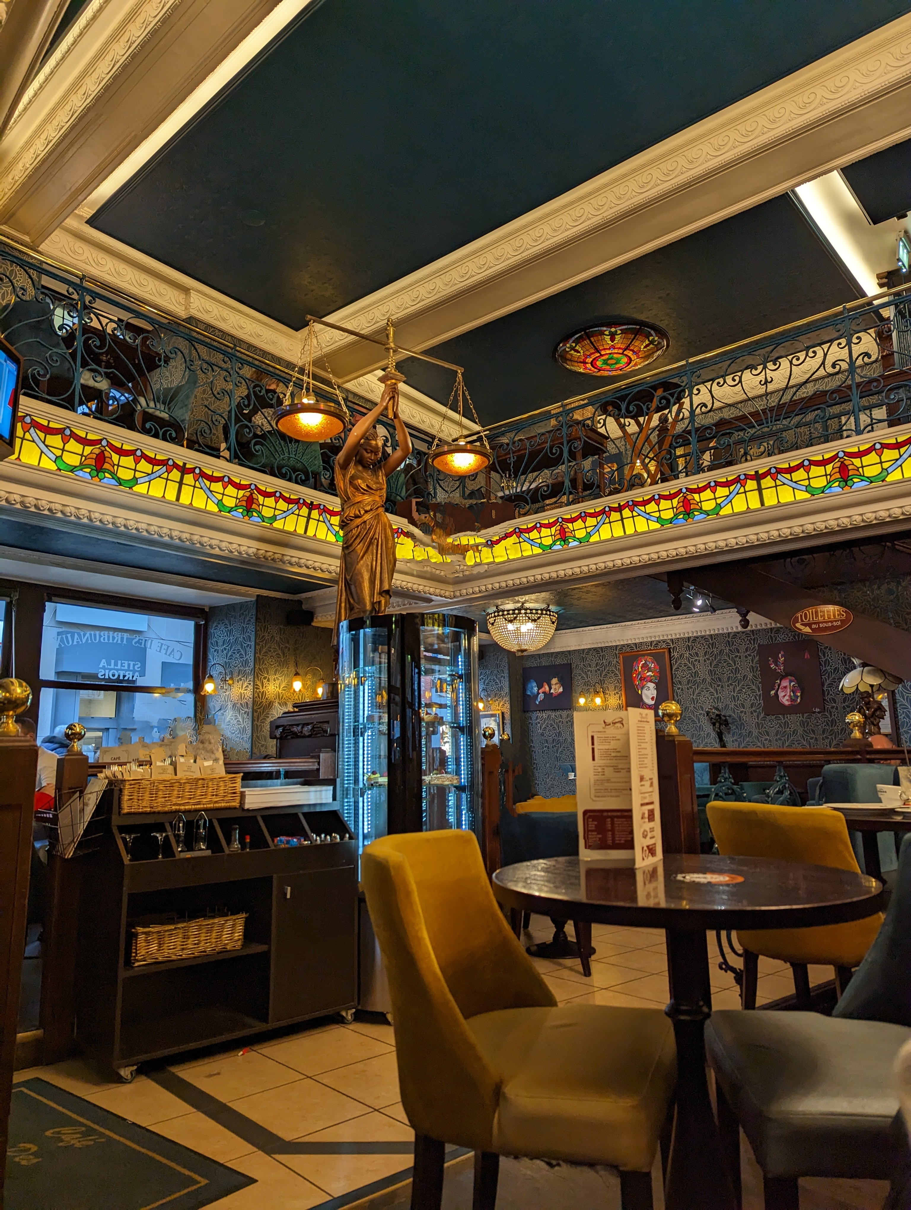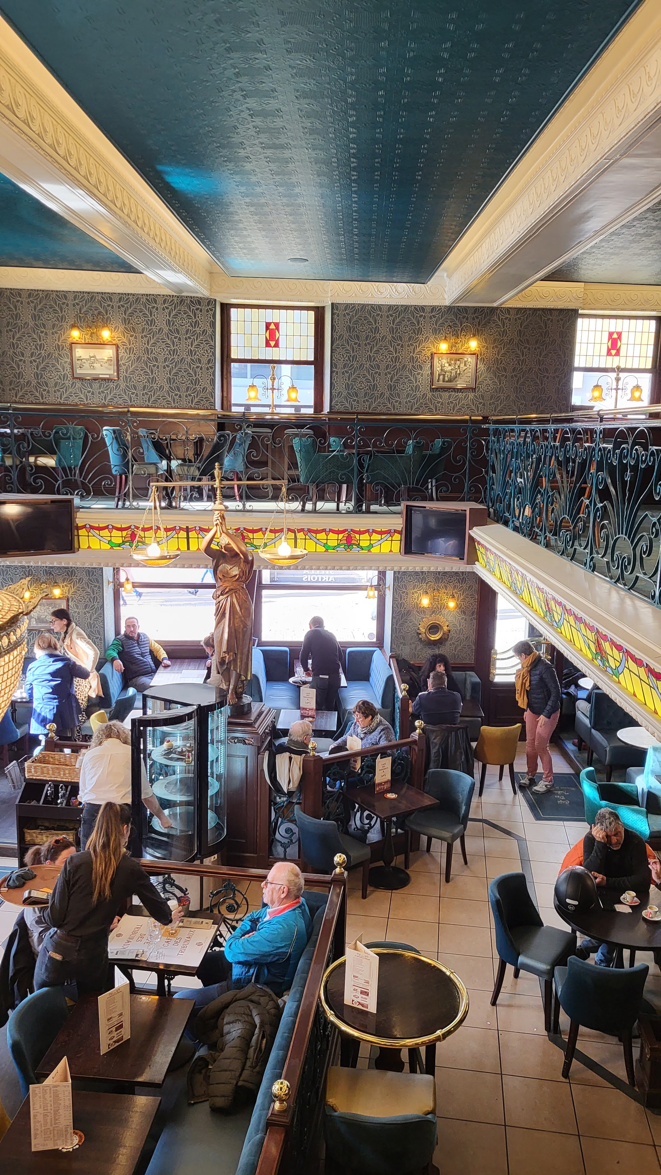 Terrasse agréable pour boire un verre ,serveurs très professionnels . L'intérieur des Tribunaux est magnifique .