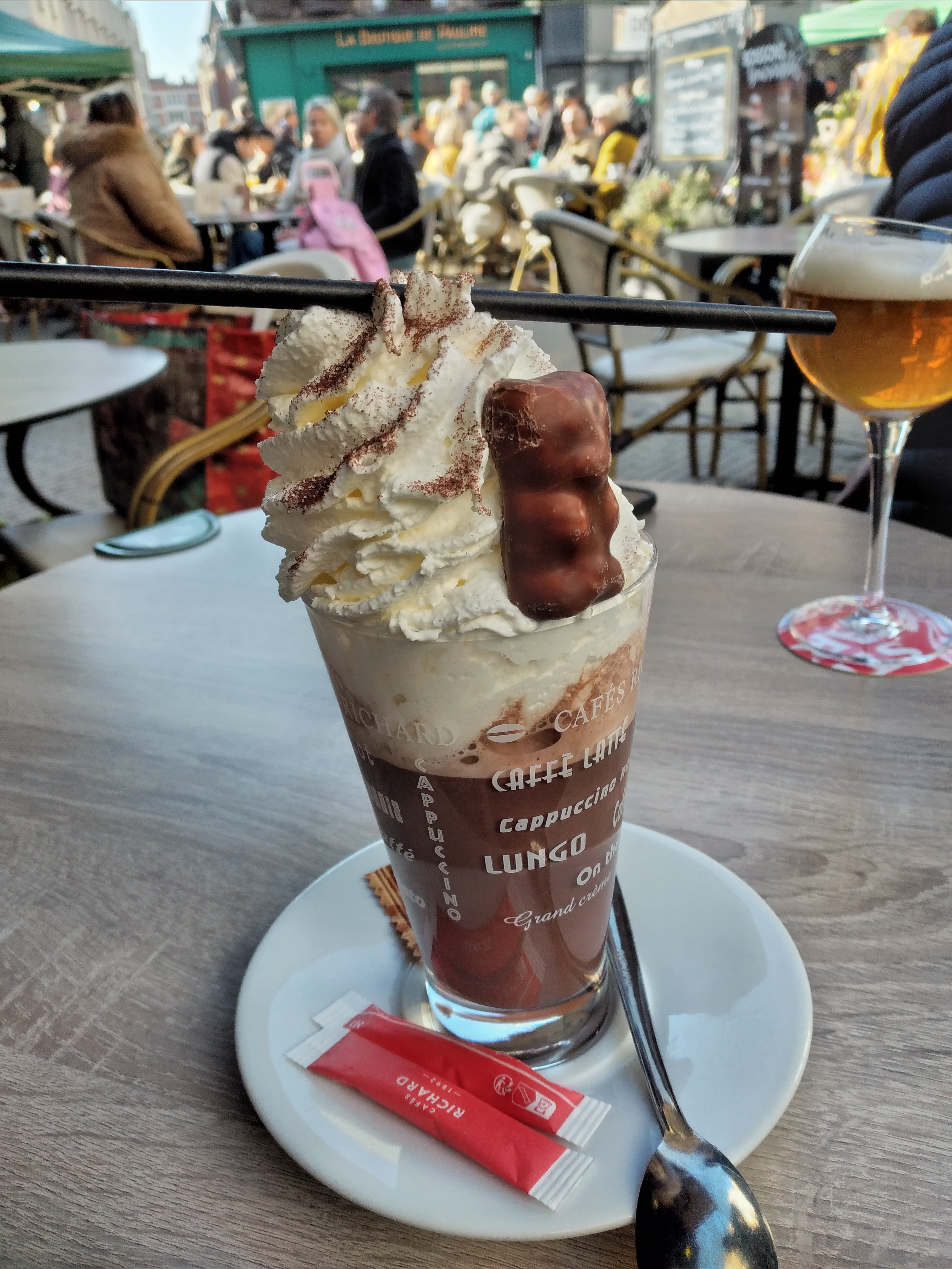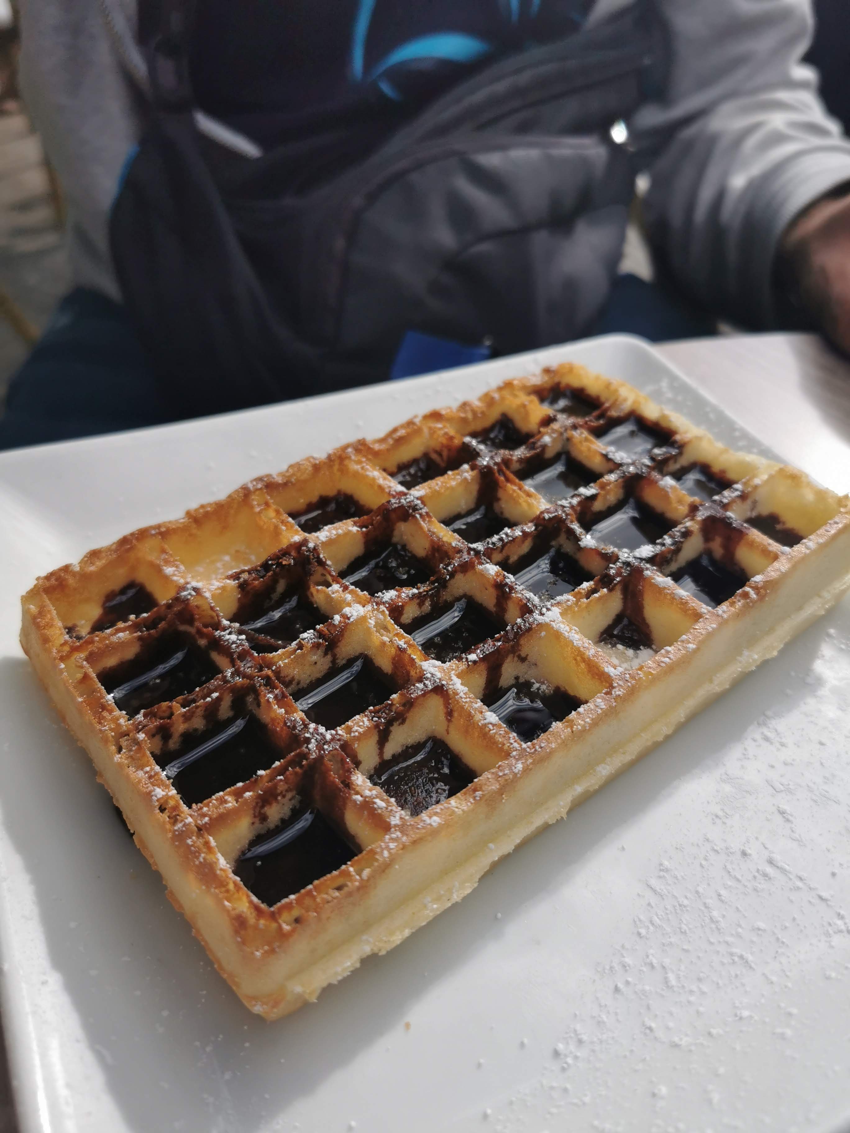 Très bon emplacement pour boire un café après avoir fait un tour au marché (entre autre) et manger une bonne gaufre bien croustillante.
