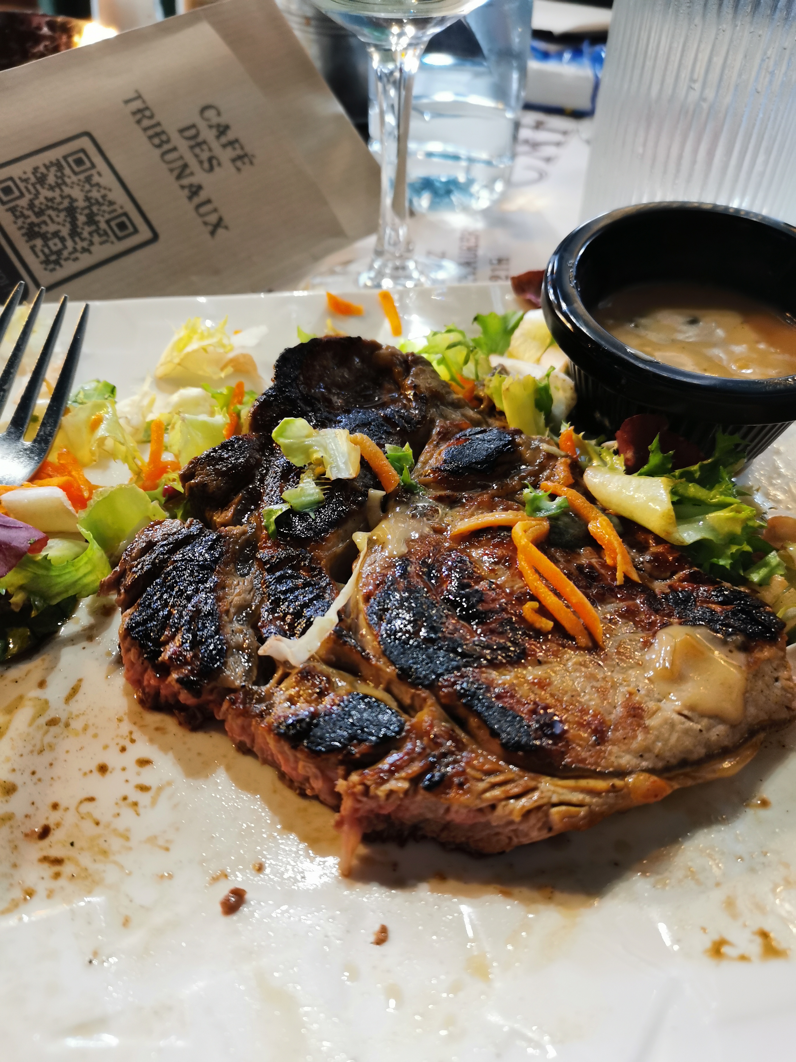 Je n'ai jamais mangé une entrecôte si mauvaise dans ma vie. La viande était trop cuite comme une semelle et même cramée avec un coup amer, la couleur est complètement évidente, pourtant ils ont quand-même osé de mettre ça sur ma table ! Très mauvaise expérience :(