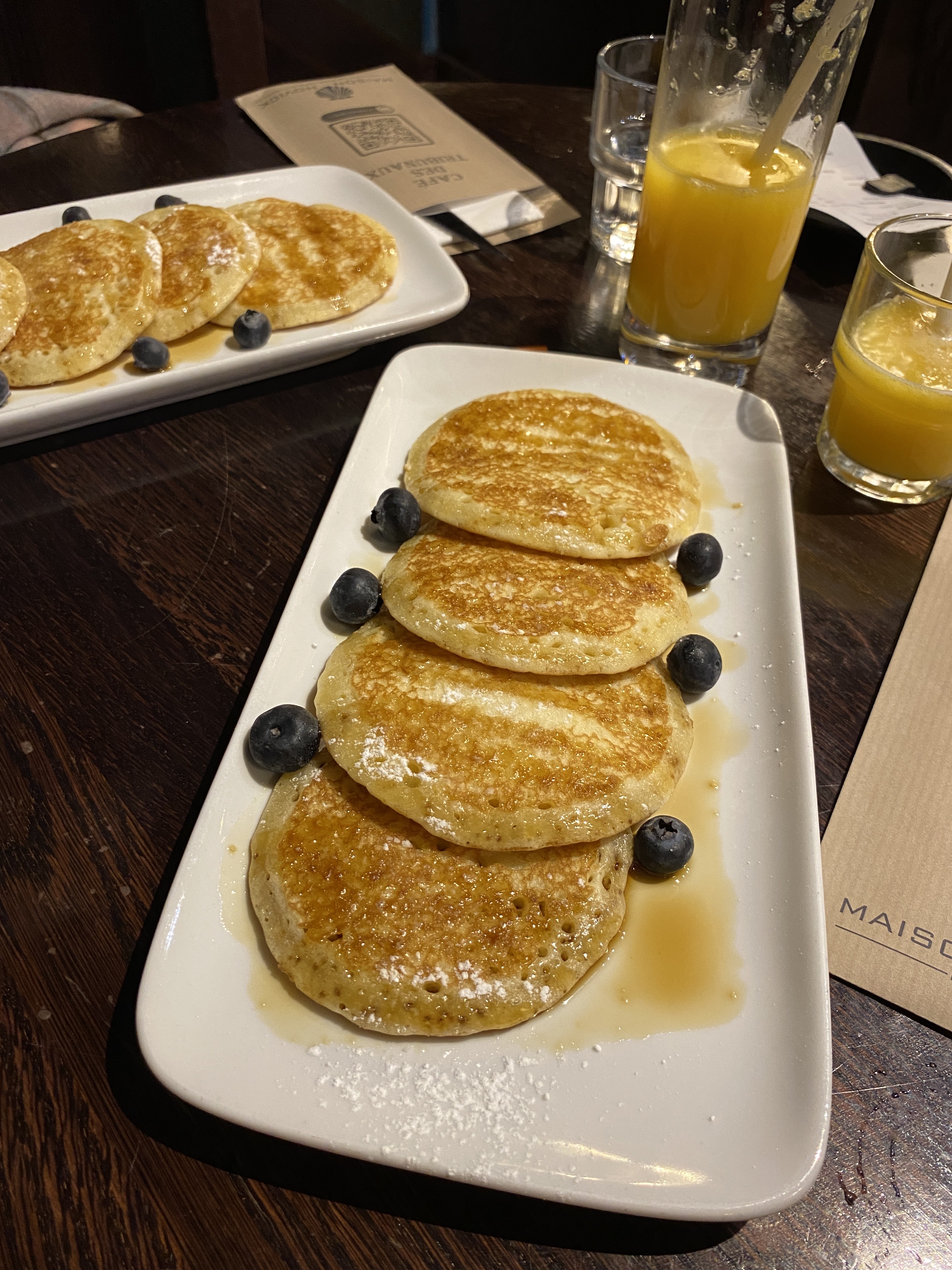 Superbe endroit pour s’installer manger un petit déjeuner ou un café. Nous n’avons pas compris pourquoi le serveur a été fort désagréable avec nous ! Prix élevé pour la quantité. 5€ le jus d’oranges pressées. Les pancakes sont très bons ! Nous espérons qu’ils sont fait maison. Les « fruits frais » sont seulement 6 myrtilles. Nous nous attendions à plus. Nous sommes sortis déçus et insatisfaite.