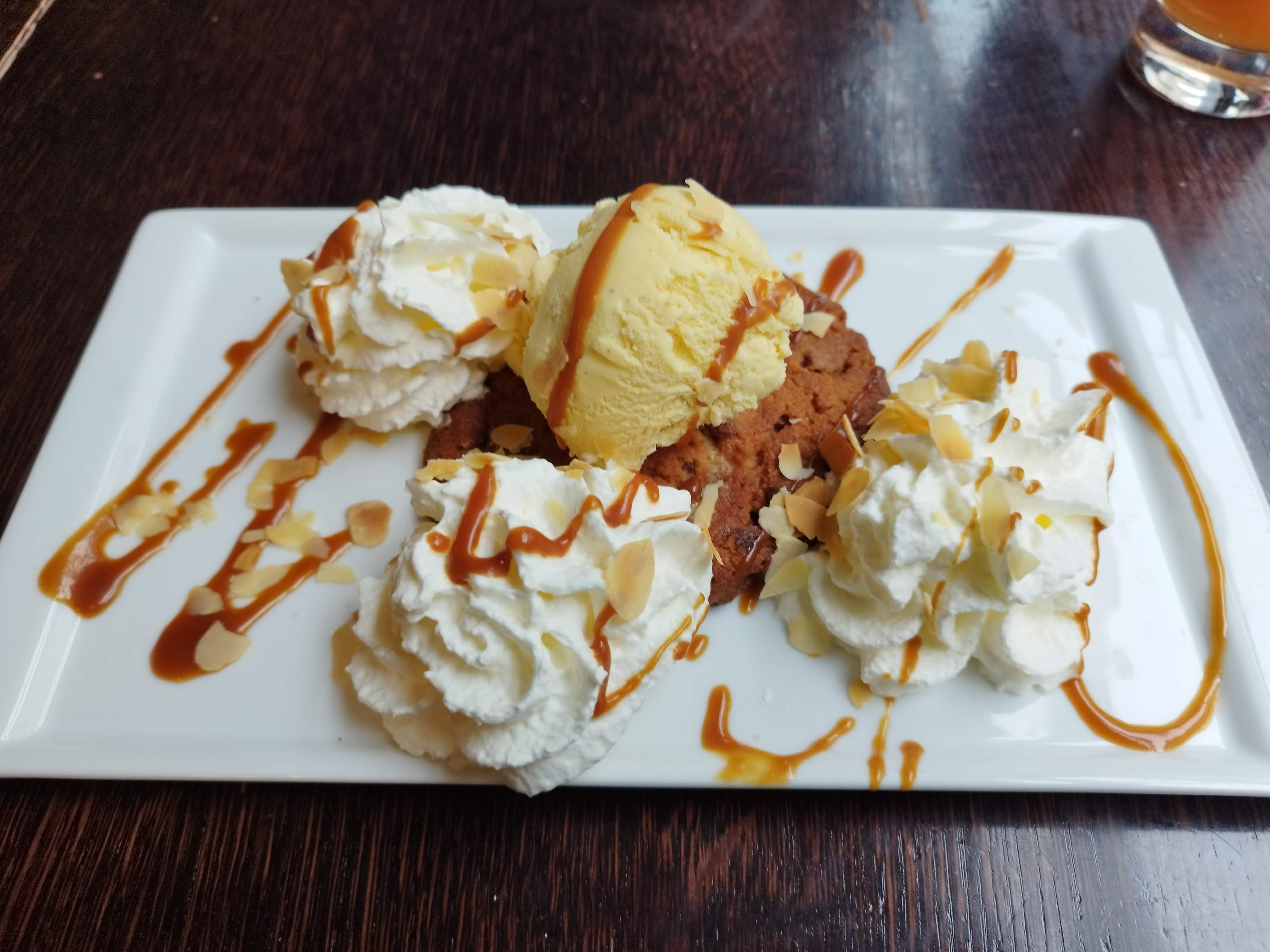 Juste un petit chocolat chaud. Quel regret d apprendre par la serveuse que le chocolat est préparé à l eau, et de constater de mes yeux que si vous prenez l option liégeois ce n'est juste que de la chantilly industrielle en bombe.... Sinon le cadre est agréable et dès les beaux jours une grande terrasse.