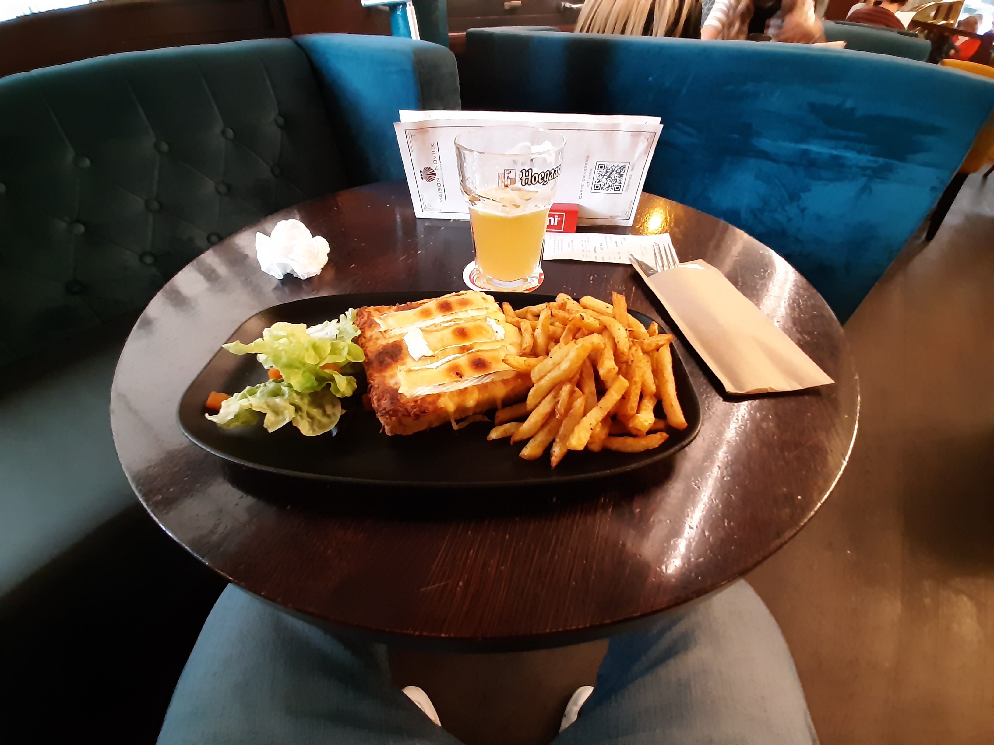 Une brasserie où on n'y va pas pour y manger des gauffres succulentes (elles sont sans plus) , ni même des plats raffinés mais pour y passer un bon moment en sirotant son verre, manger son plat traditionnel ou encore pour y manger sa crêpe sucrée, dans un cadre au décor magnifique et d'un charme fou, avec une très belle architecture extérieure. On s'attend d'ailleurs à payer une blinde, et bien non ! Vous mangez à prix raisonnable dans un endroit exceptionnel. C'est pas de la grande cuisine mais c'est bon Le plat du jour à moins de 10 €. Un service agréable, très sympathique et pro. Je recommande pour un repas simple, servi rapidement et sans chichis le midi.