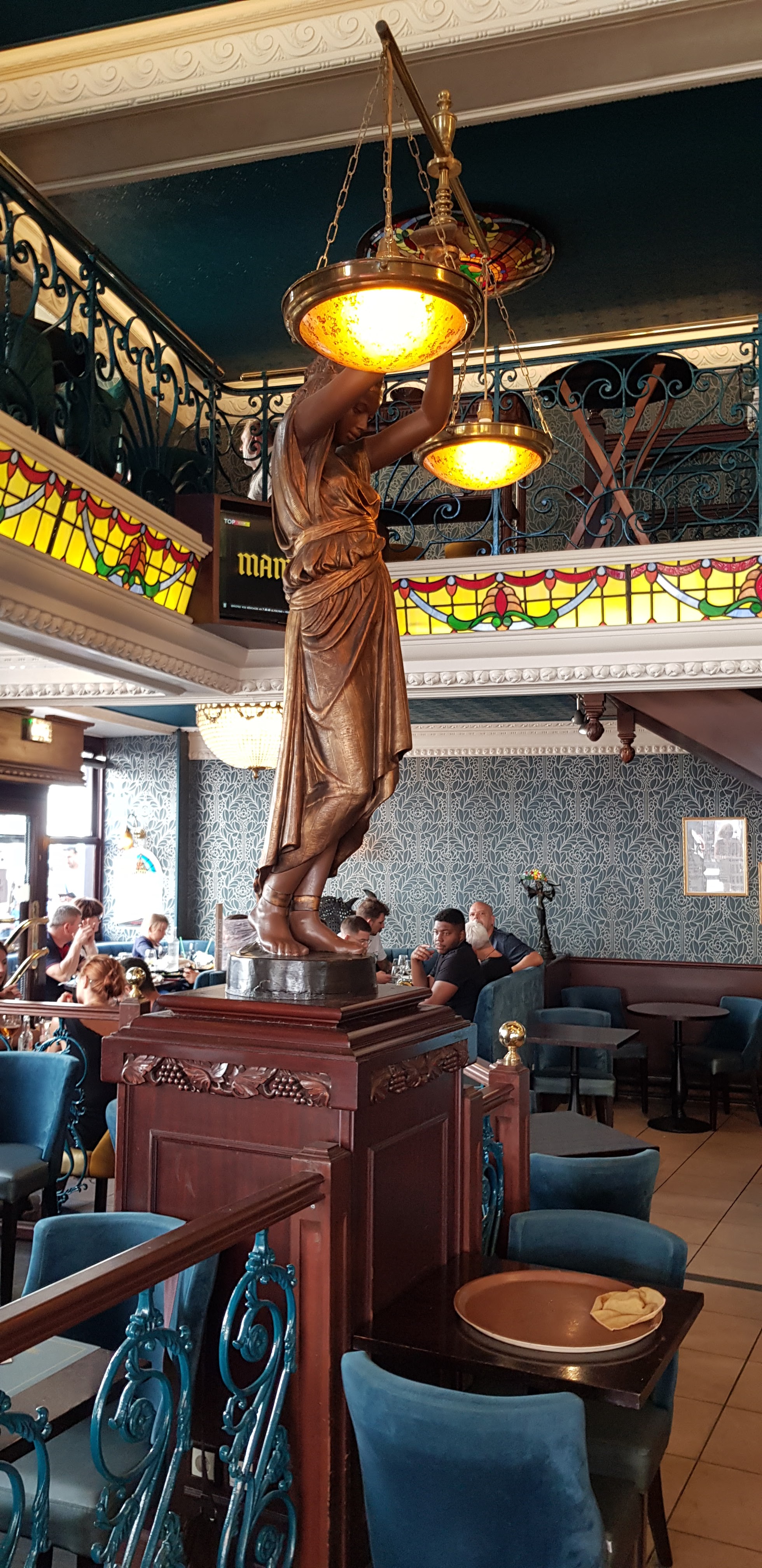 Très belle salle. Personnel professionnel et réactif. Nourriture type brasserie sans surprise. C’est bon. Sert à toutes heures le WE. J’enleve 1 étoile car chaque boisson est majorée de 30 centimes lorsqu’on mange. C’est incompréhensible (ça devrait être l’inverse…), non annoncé sur la carte, et inutilement mesquin.